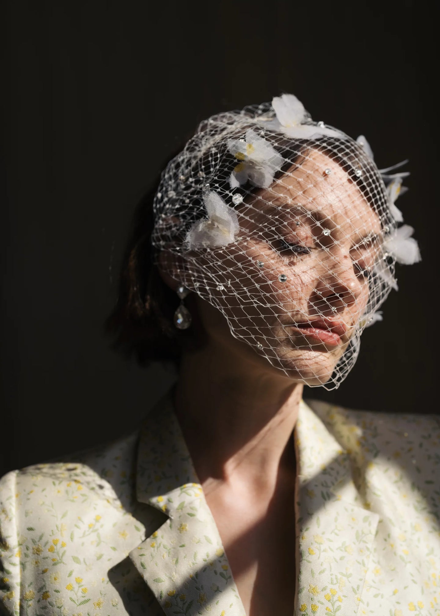 The Danika Voilette is made in New York from silk organza butterflies and hand-beaded Swarovski crystal on a silk wrapped flexible headband. We recommend storing headbands in their dust bag while not in use. Avoid contact with water, perfume, and other chemicals, including hairspray, which should be used only before placement in the hair.