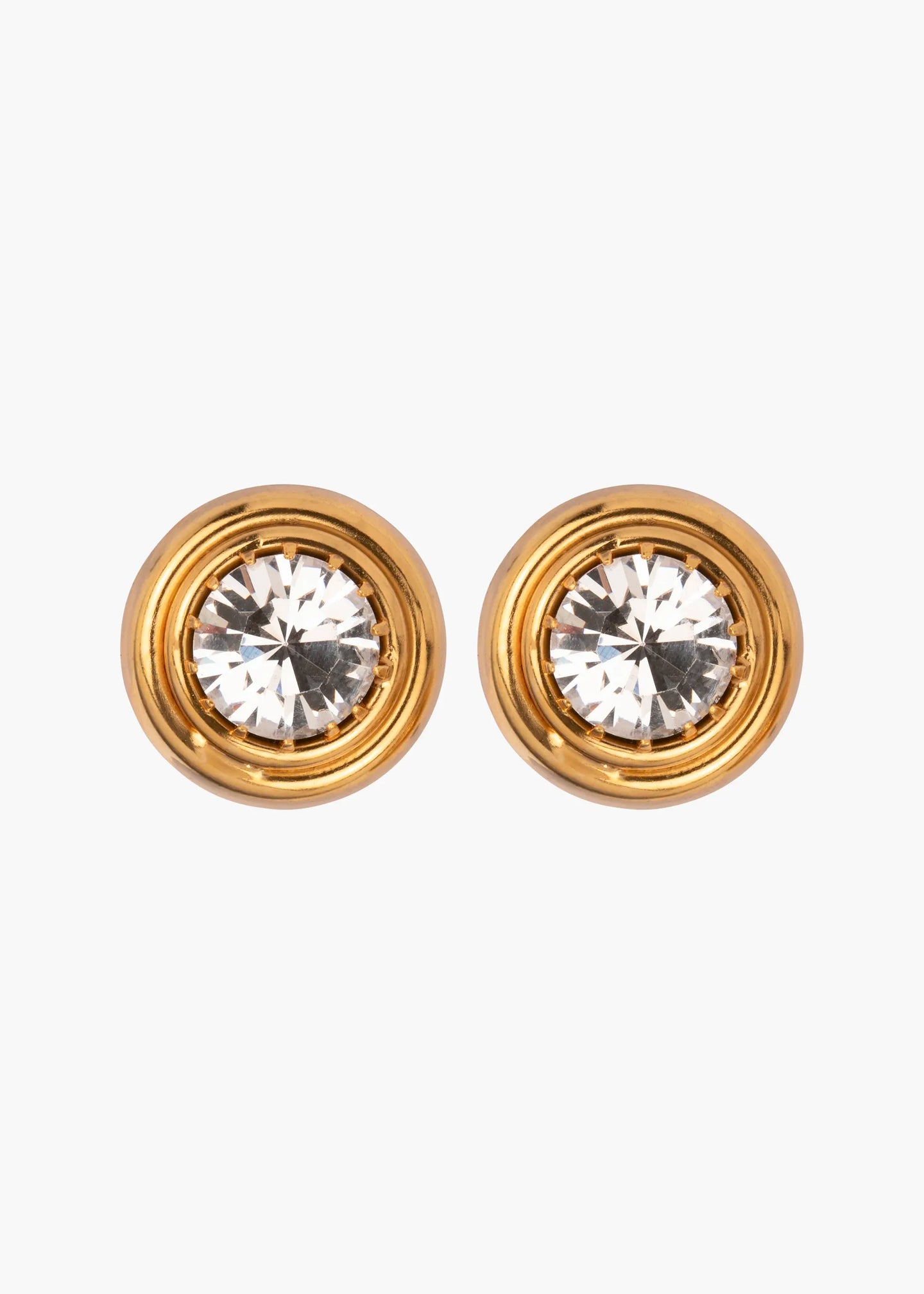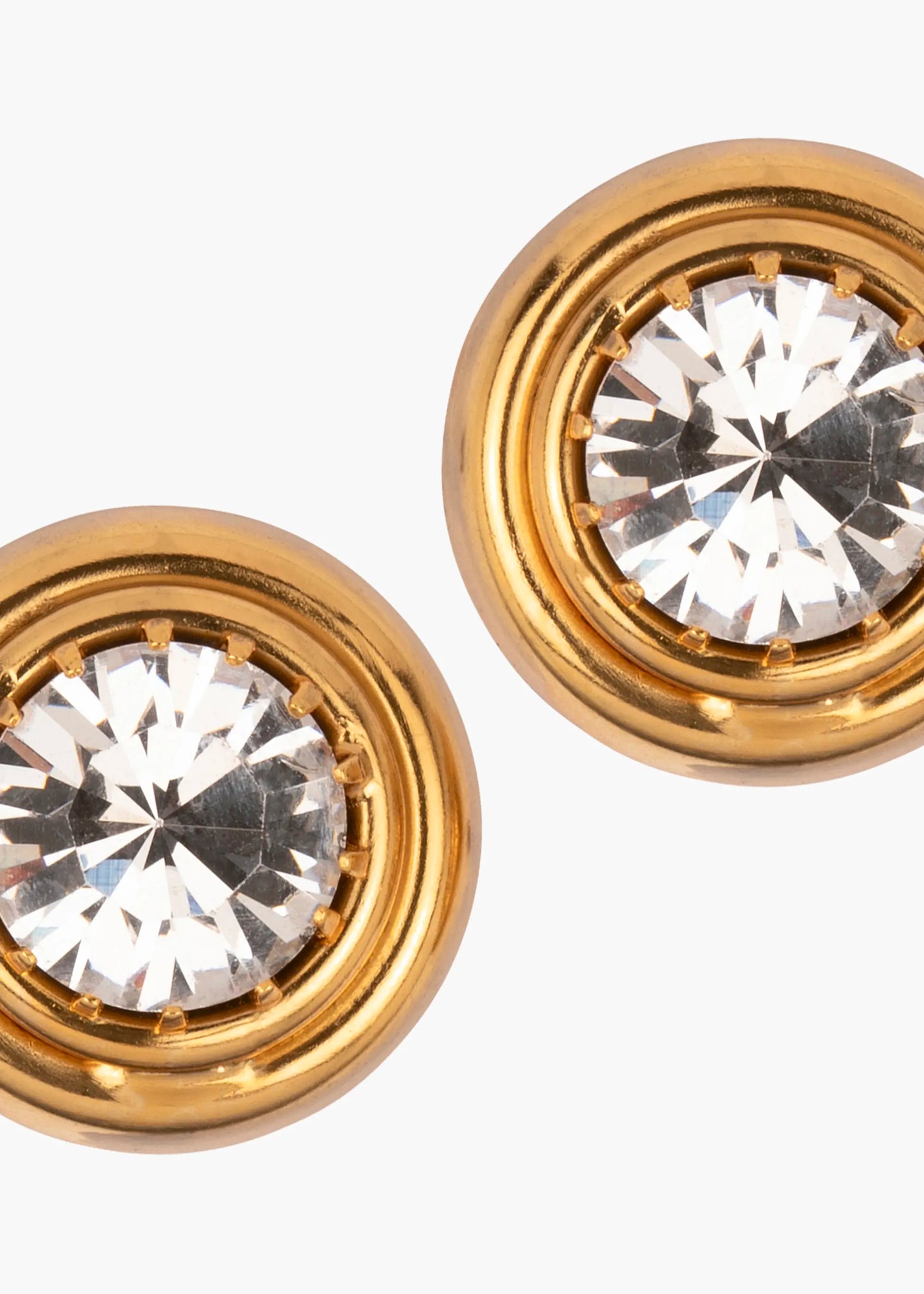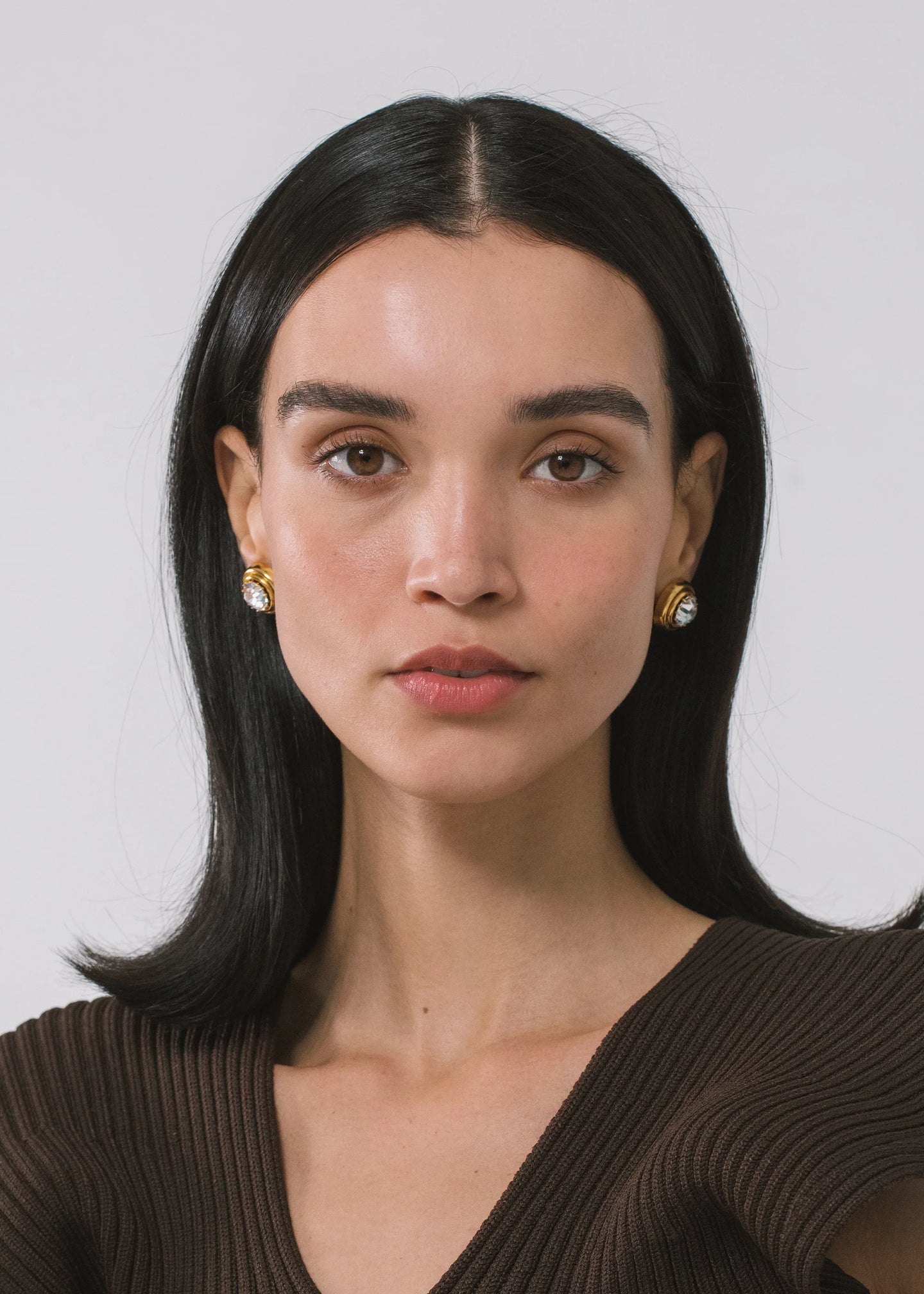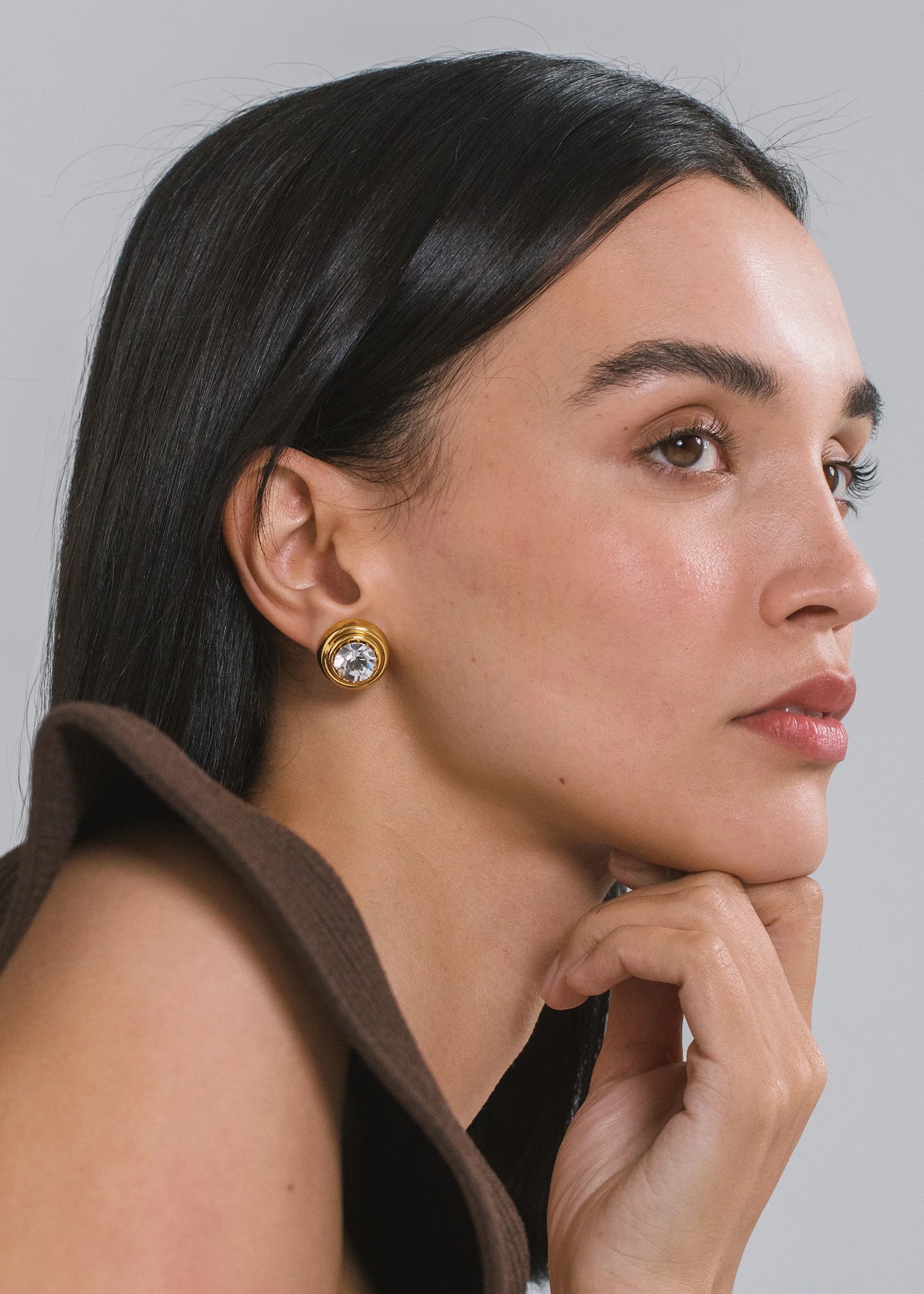 The Jodi Earrings are an ultra-wearable, yet striking, addition to any jewelry wardrobe. Inspired by vintage fine jewelry with multi-prong settings, these petite studs feature an Austrian crystal in an 18-karat gold-plated bezel. They feel weightless and comfortable on the ear, making them all the more versatile. Dimensions: 3/4in x 3/4in