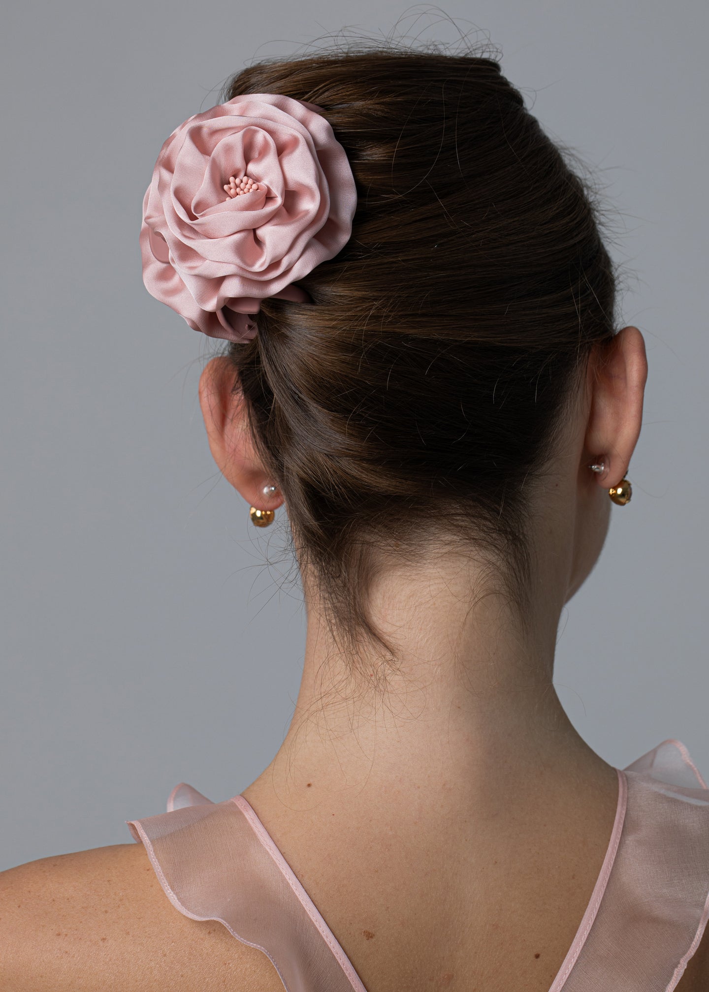 The Rose Jaw Clip is made by hand of silk fabric with an acetate resin claw clip. We recommend treating this clip as you would a piece of jewelry, and storing in the dust bag when not in use. Avoid contact with water, perfume, and other chemicals, including hairspray, which should be used before placement in the hair. Imported.