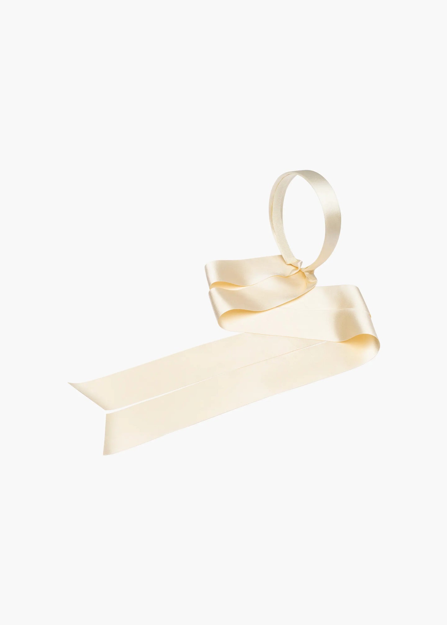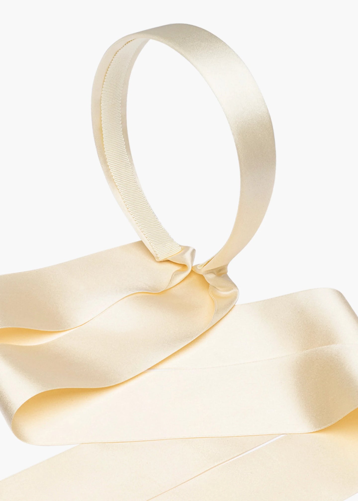 Created in collaboration with London-based tastemaker and content creator Leonie Hanne, the Audrey Headband is equally inspired by New York sophistication and Parisian romance— "there’s just something about satin's elegance and softness," says Hanne. Made by hand in New York, the fine Japanese silk satin ribbon trails down the back to be tied in a bow, emphasizing the richness of the material. The hand-draped ribbon wraps around a flexible and comfortable headband base, giving the appearance of ribbon effortlessly tied in the hair, with the ease of a headband, slipped on in seconds. Dimensions: Headband: 1 inch width, Tails: 28 inch length