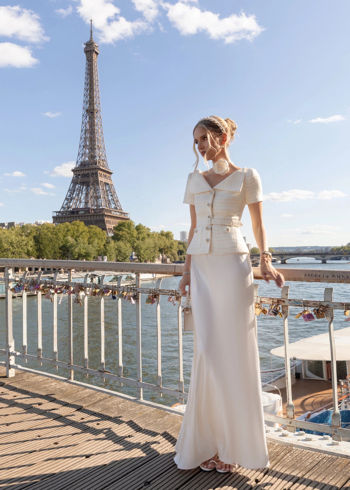 Designed in a collaboration between Jennifer Behr and fashion industry-darling Leonie Hanne, the Fleur Ribbon Tie is a marriage of the timeless glamour of New York’s Upper East Side, and the elegance of European capitals— especially Paris, which the German-born tastemaker holds so dear. The rosette, a nod to that Parisian romance, is made by hand with silk satin, and sits on a Japanese silk satin ribbon. Offering endless versatility, this piece can be styled around the neck as a choker, in the hair, and anywhere else to add a sense of drama to your look. Dimensions: Flower: 3.5 inch width, Ribbon: 44.5 inch length