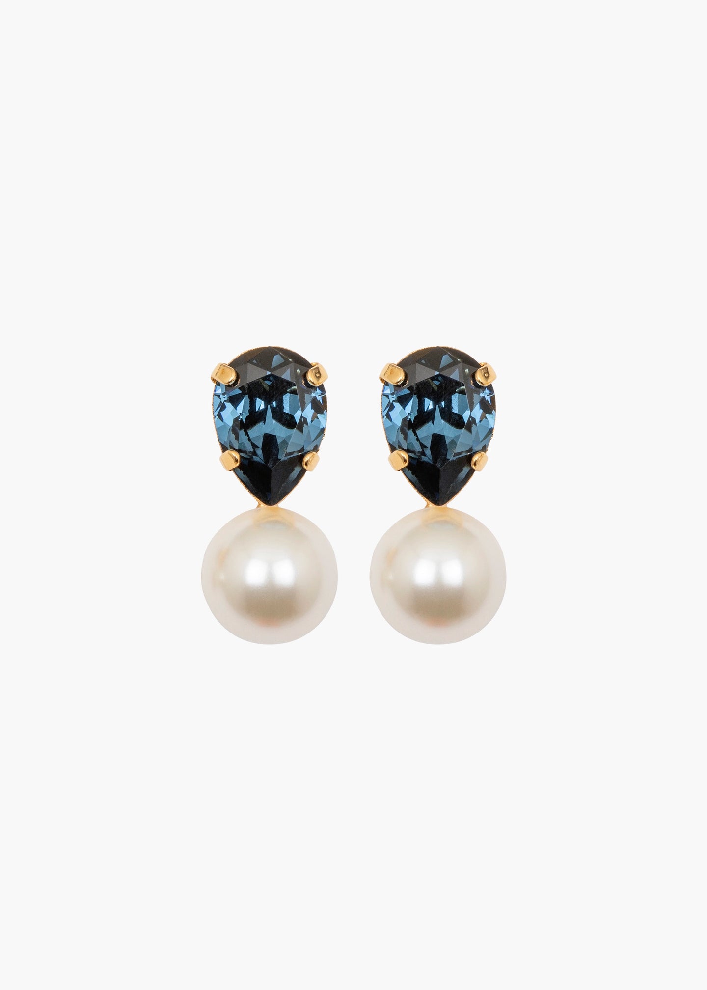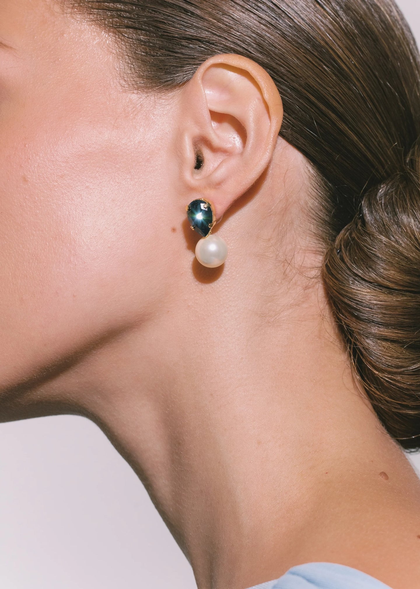 Stunning in their simplicity, the Cimone Earrings are a fresh take on a classic drop earring, fit for any occasion. Made by hand in New York, they feature a pear-cut Austrian crystals, with crystal pearl drops. Their petite size and layered materials allow these earrings to pair perfectly with a wide array of jewelry and hair accessories from our collection. Dimensions: 1 1/4in x 7/8in
