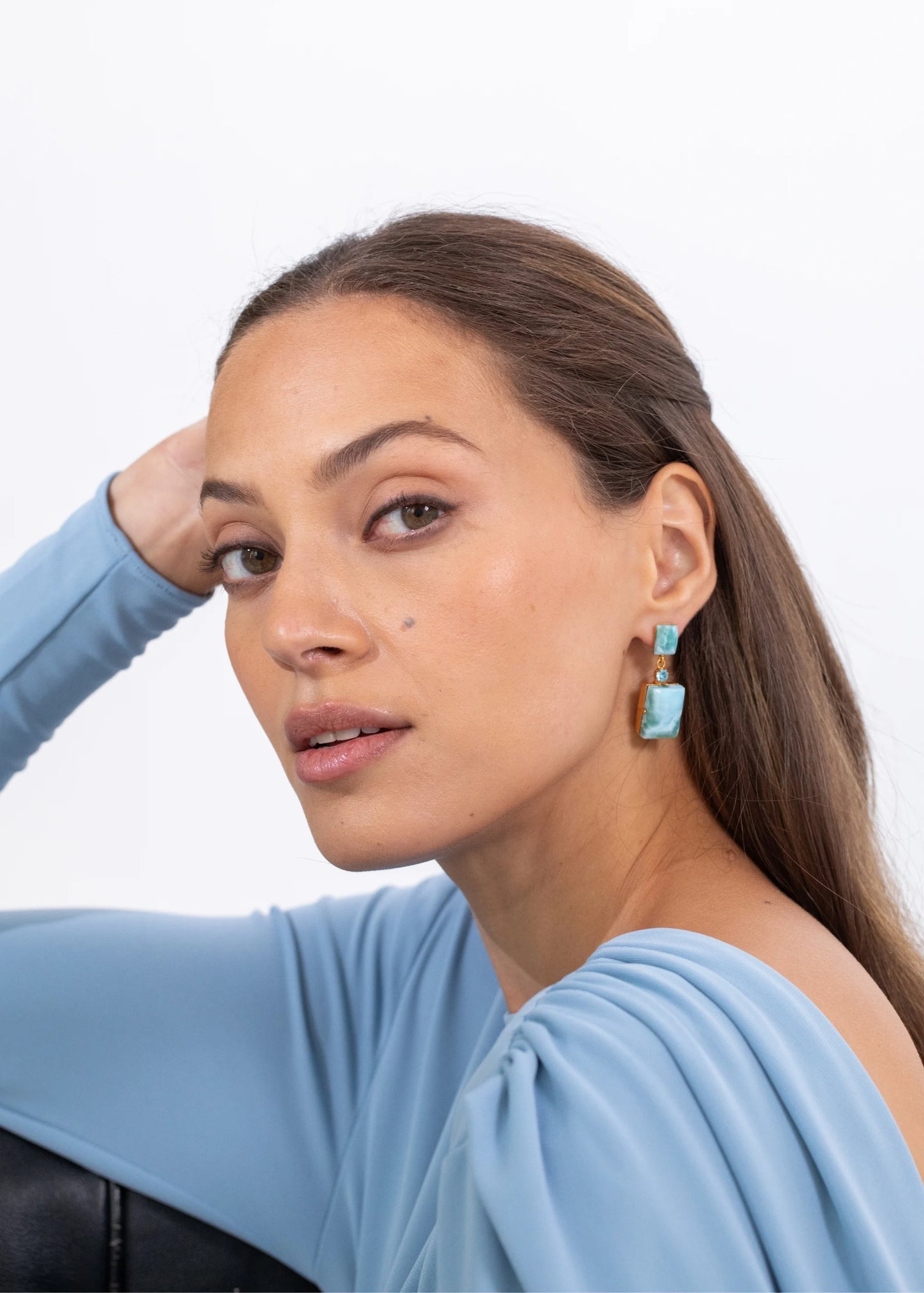 The Joliel Earrings are made by hand in New York from natural semi-precious stones, Austrian crystals, and 18K gold plated brass. All stones have natural variances in color and markings that make each one unique. They have a surgical-steel post, are nickel-free and safe for sensitive skin. We recommend storing earrings in their dust bag while not in use, and avoiding contact with water, perfume, hairspray, and other chemicals.
