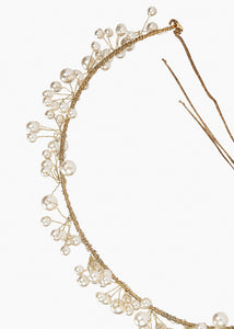 The Primavera Circlet is made in New York of Swarovski pearls on a brass base. Ribbon ties in the back create a secure fit. We recommend treating this headband as you would a piece of jewelry, and storing in the dust bag when not in use. Avoid contact with water, perfume, and other chemicals, including hairspray, which should be used before placement in the hair.