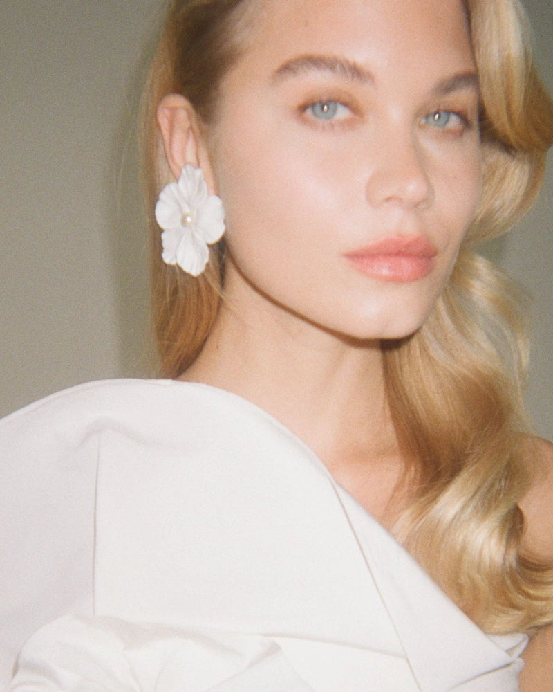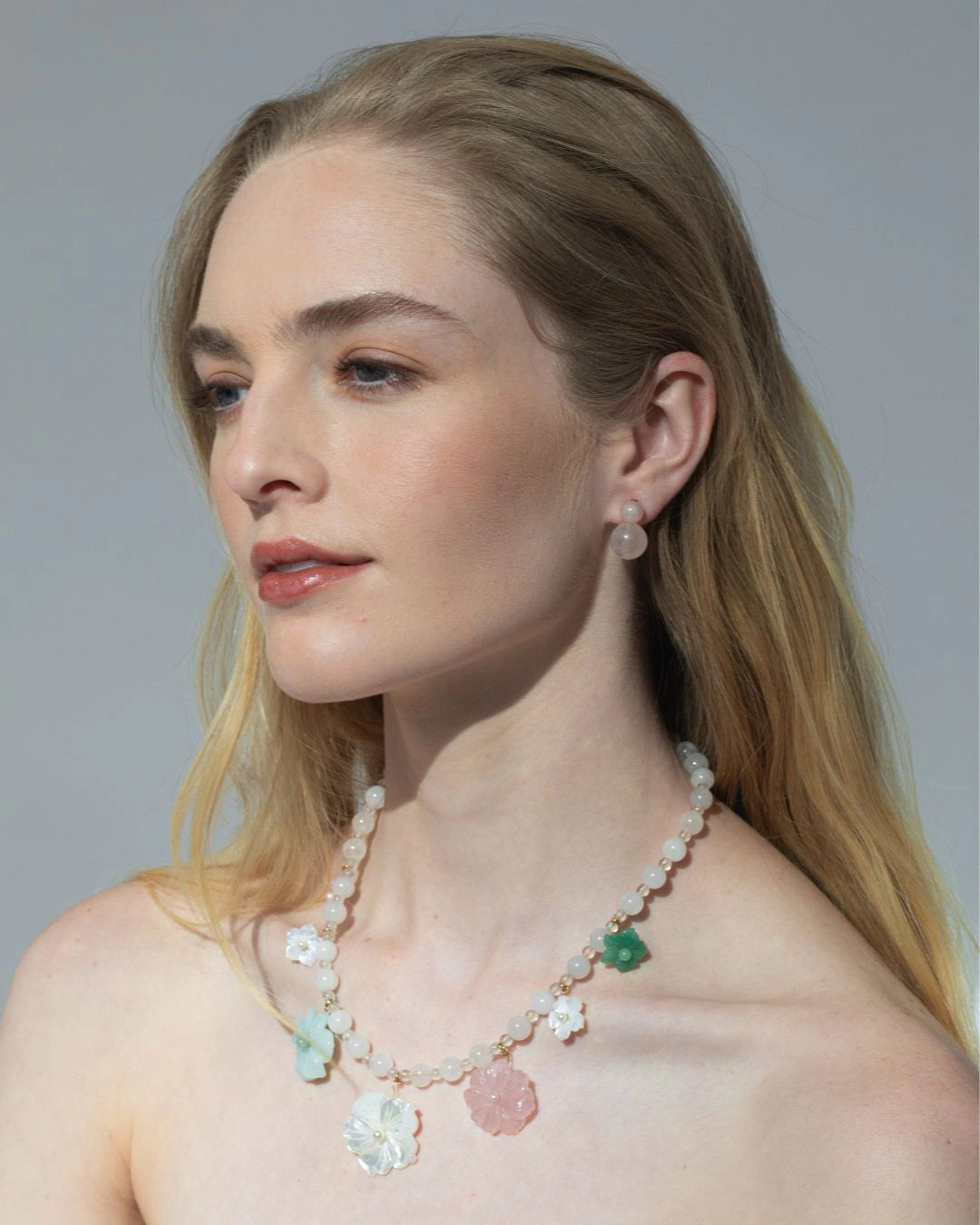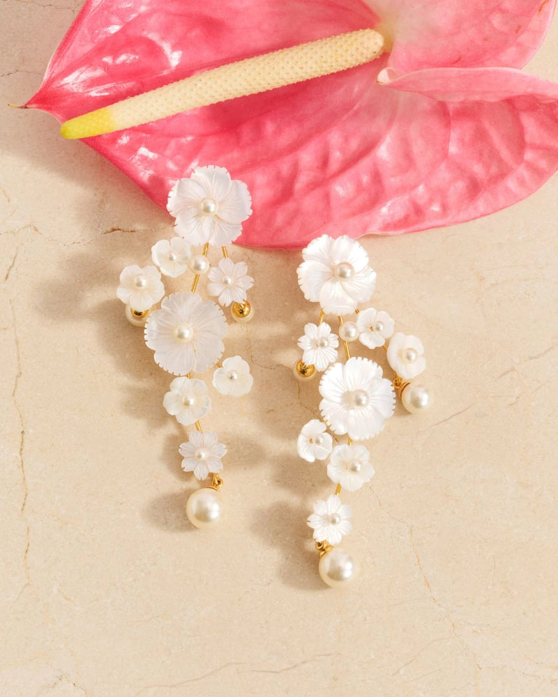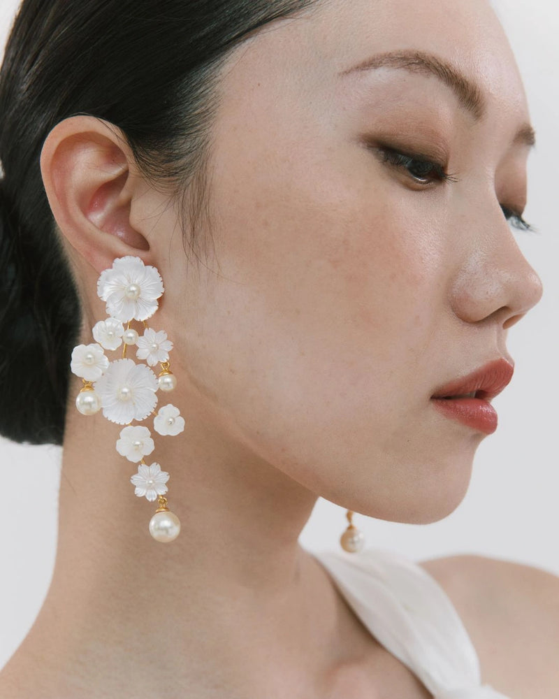 Delicate mother of pearl flowers floating in your hair, silk faille rosettes folded by hand in New York City. Blossom in our collection of accessories inspired by beauty of nature.