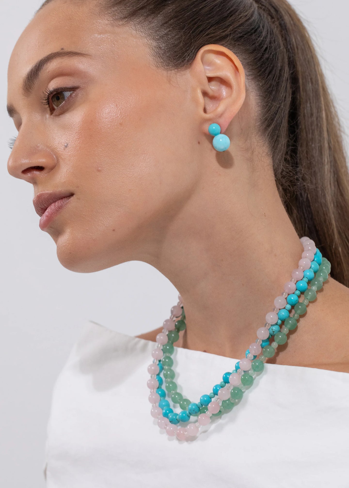 The Dhara Necklace is handmade in New York of semi-precious stones. All stones have natural variances in color and markings that make each one unique. Our jewelry is nickel-free and safe for sensitive skin. We recommend storing jewelry in its dust bag while not in use, and avoiding contact with water, perfume, hairspray, and other chemicals.