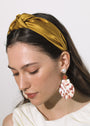 This Samaya Headband is made in New York from Italian silk, and lined in silk to ensure ultimate comfort and promote hair health. We recommend storing headbands in their dust bag while not in use. Avoid contact with water, perfume, and other chemicals, including hairspray, which should be used only before placement in the hair.