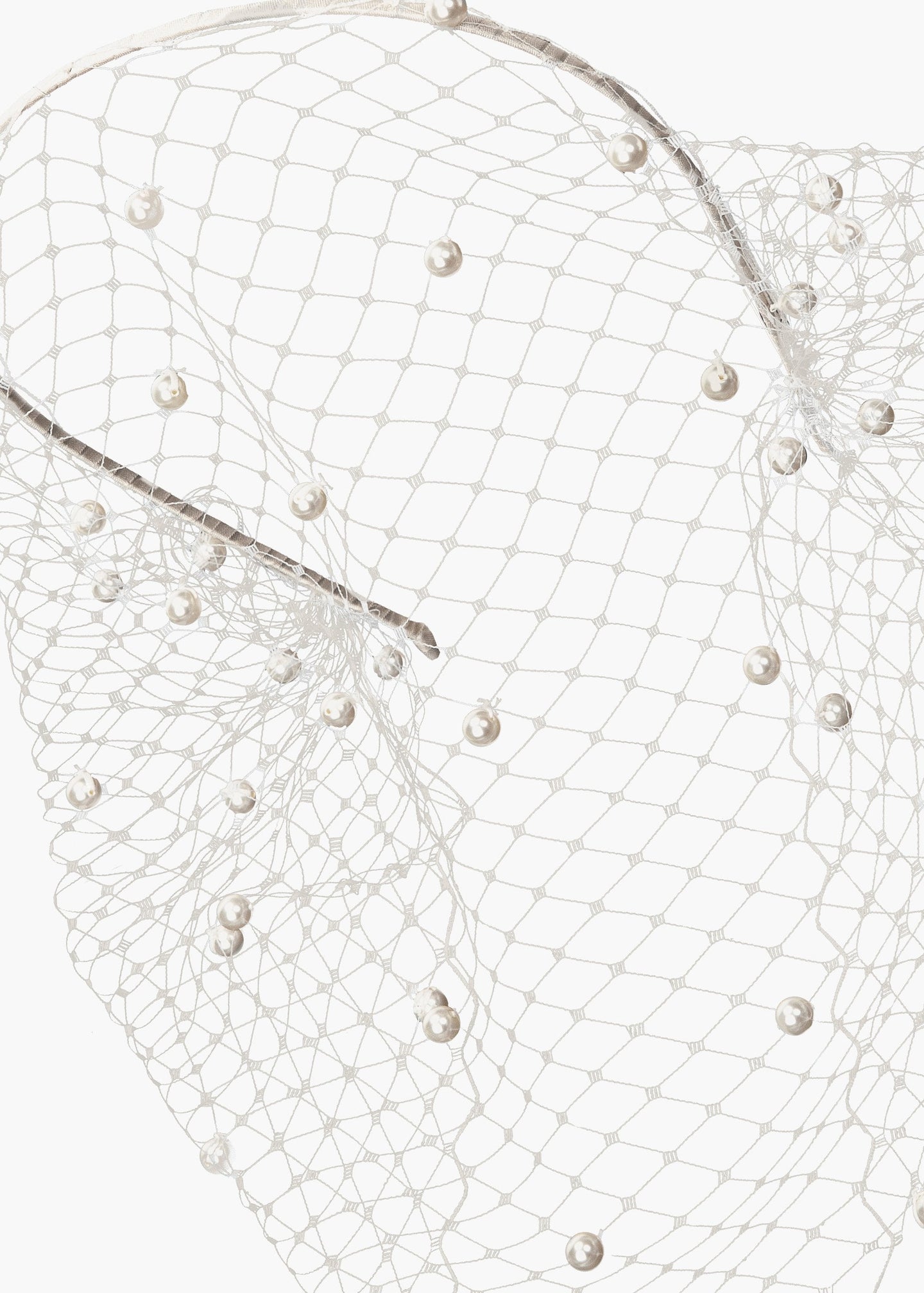 The Voilette Headband with Pearls is made in New York from French nylon veiling, Swarovski pearls, and a silk-wrapped headband. We recommend storing headbands in their dust bag while not in use. Avoid contact with water, perfume, and other chemicals, including hairspray, which should be used only before placement in the hair.