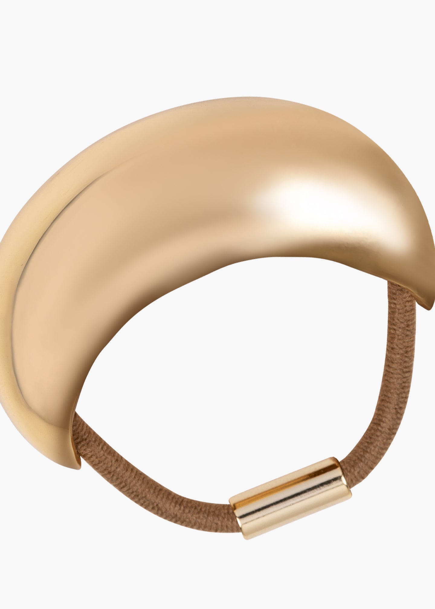 The Mona Ponywrap breathes chic new life into any ponytail. The modern, bulbous shape flawlessly sets the scene for its 18-karat-gold plated or rhodium plated shine. We love layering multiples at once for a dramatic, bespoke look. Dimensions: H: 1/2 in x L: 1 3/4 in Elastic: 3 1/2 in