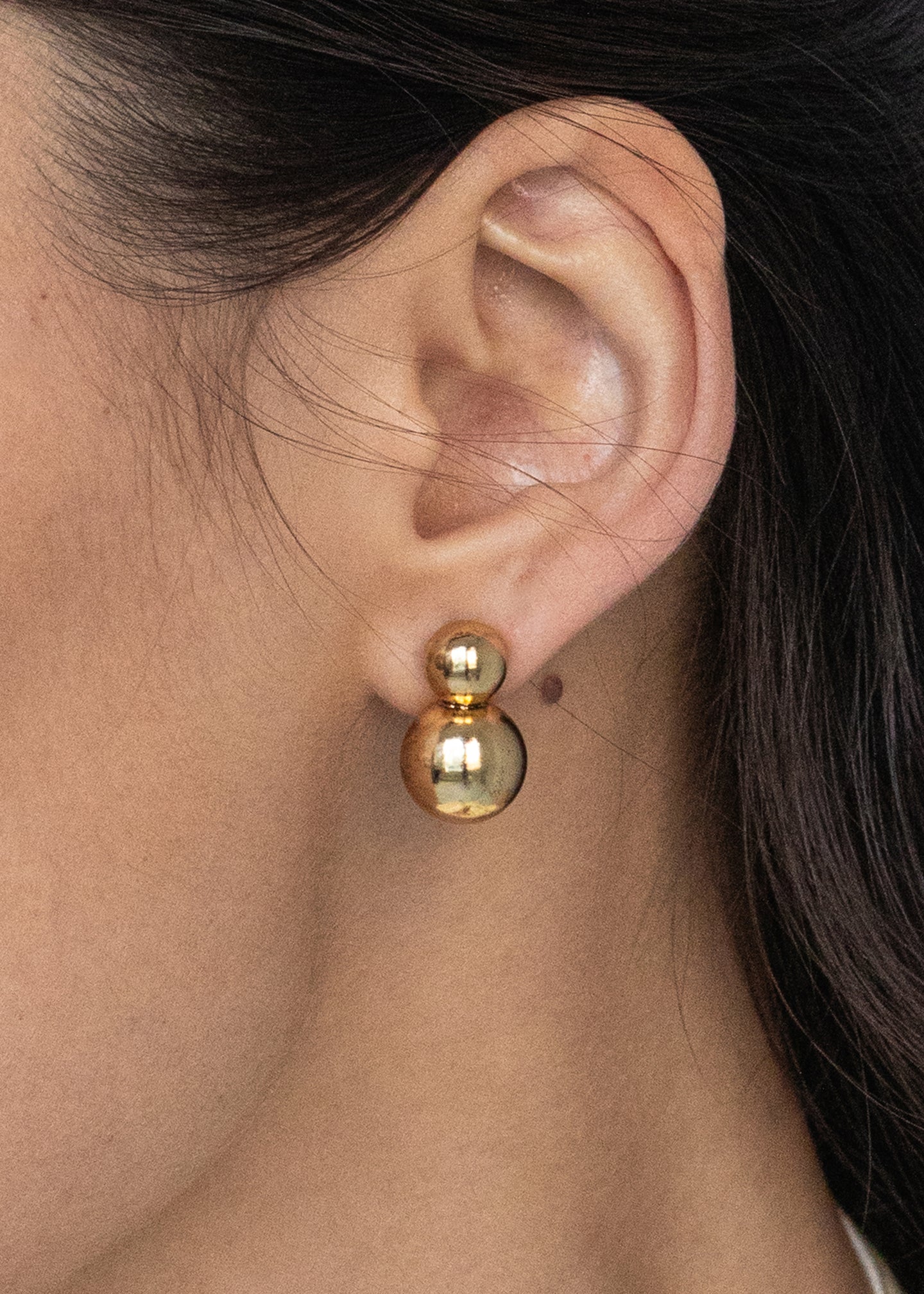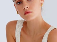 The Inga Earrings are made by hand in New York from 18K gold or rhodium plated brass. They have a surgical-steel post, are nickel-free, and safe for sensitive skin. We recommend storing earrings in their dust bag while not in use, and avoiding contact with water, perfume, hairspray, and other chemicals.