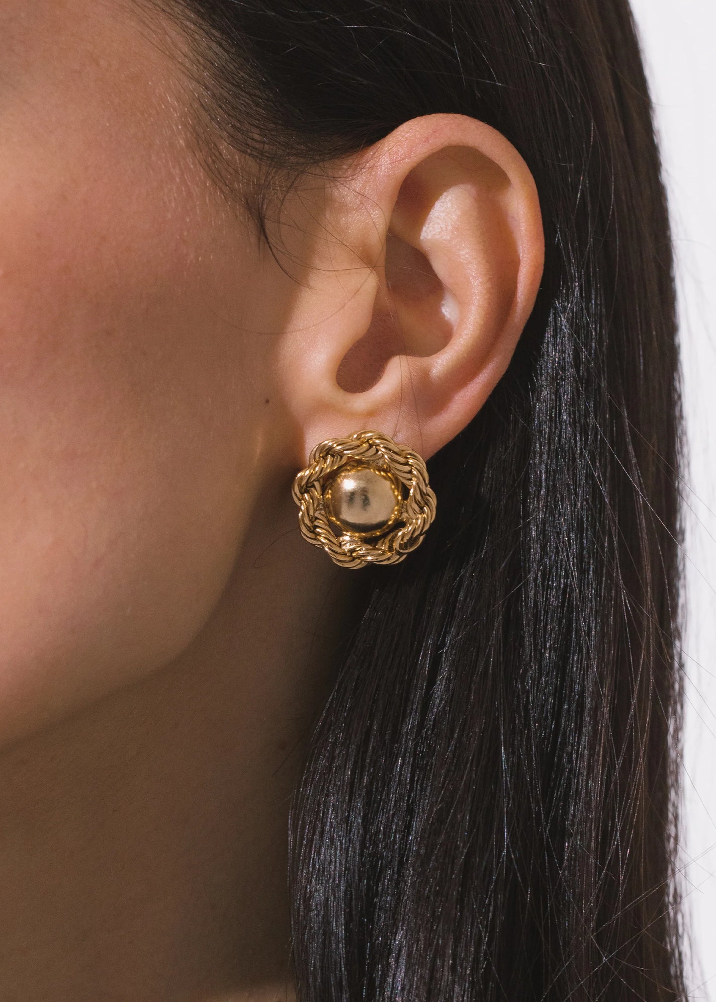 Drawing inspiration from vintage button earrings of the 1980s, the Caryann Earrings channel that same effortless glamour. Made by hand in New York, each chain is wrapped by hand around a gleaming brass or rhodium plated dome, a process that allows for considerably more rich detail than casting. The little sister to our Brooke Earrings, these stud earrings are subtle enough to elevate any ensemble. Dimensions: 0.875" length.