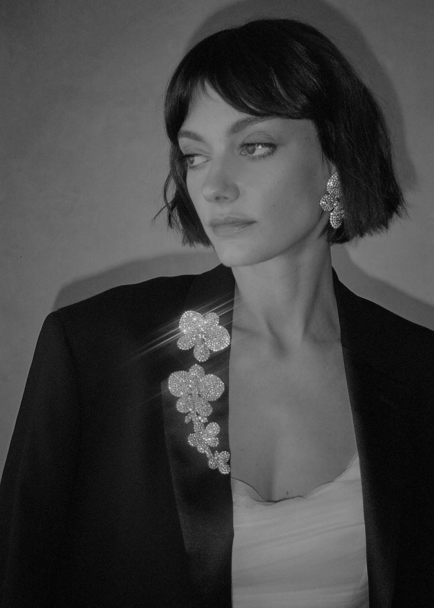 The Kiarra Brooch is made by hand in New York of 10K gold or rhodium plated Austrian crystal orchid motif on a steel brooch pin closure. We recommend storing brooches in their dust bag while not in use, and avoiding contact with water, perfume, hairspray, and other chemicals.