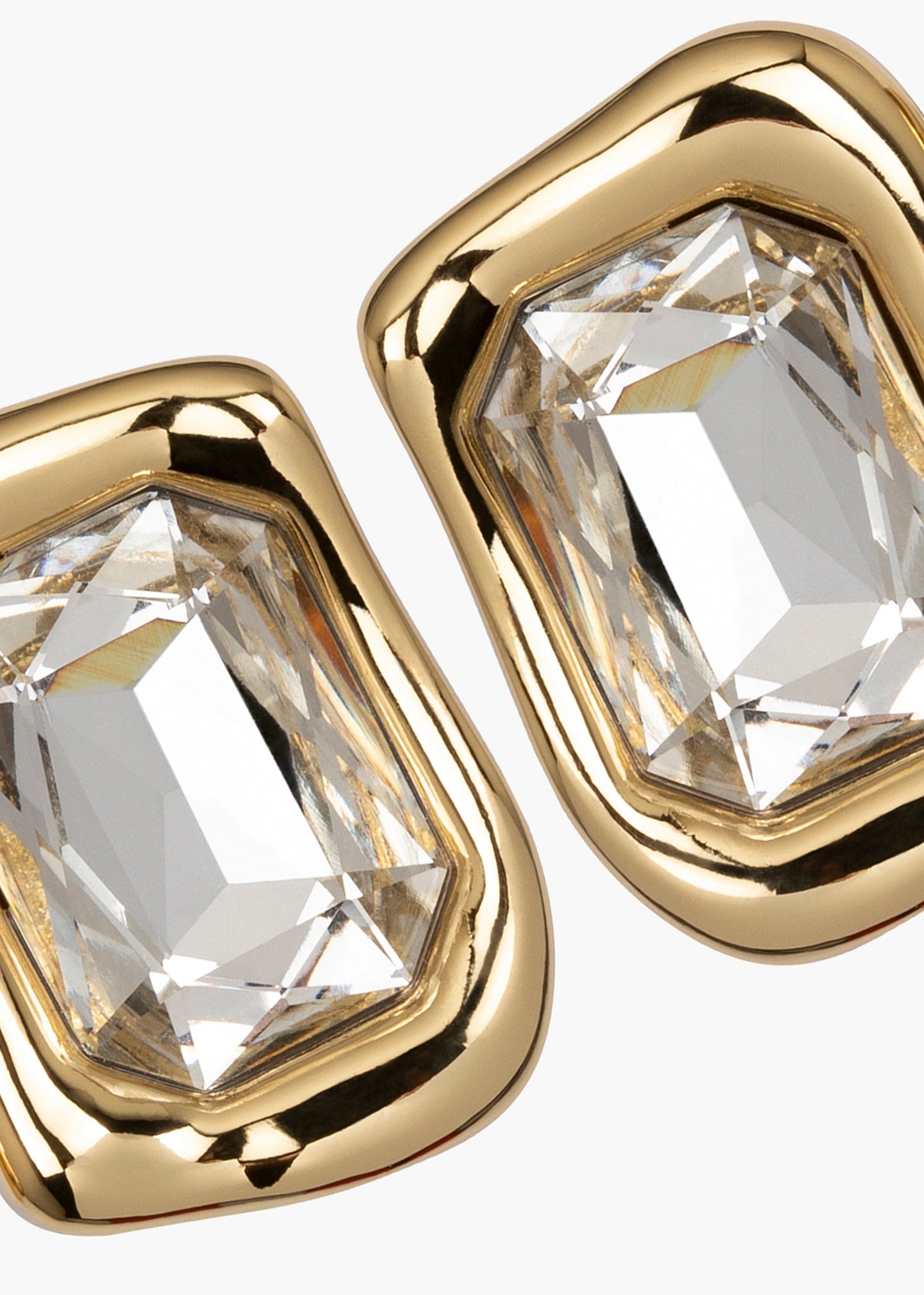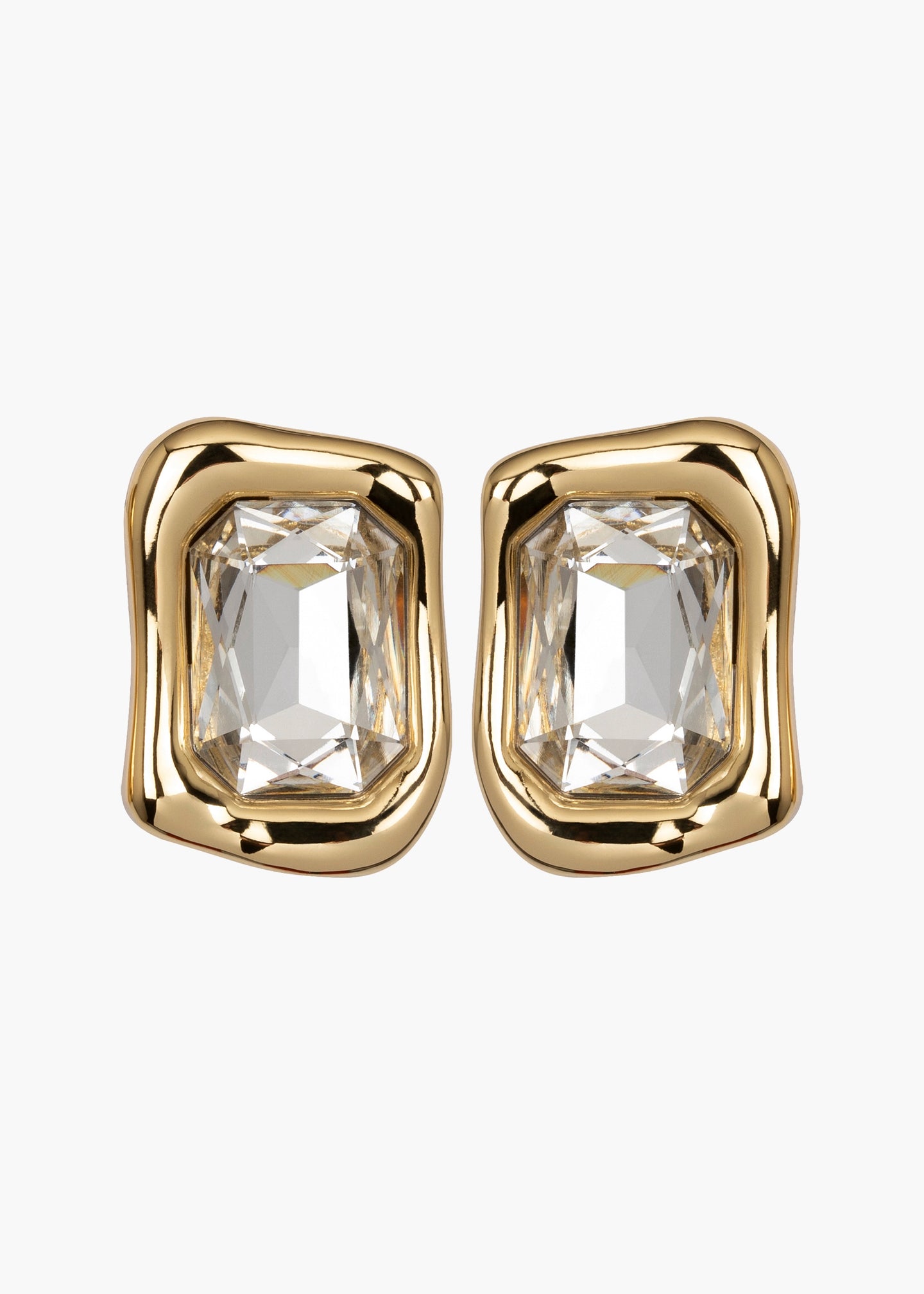 The Caterina Earrings feature a distinctly sculptural 18-karat gold-plated bezel, with metal that appears fliud, like water in motion. Made by hand in New York with a hand-carved casting, they center upon oversized cubic zirconia stones. They feel weightless and comfortable on the ear, making them all the more versatile.