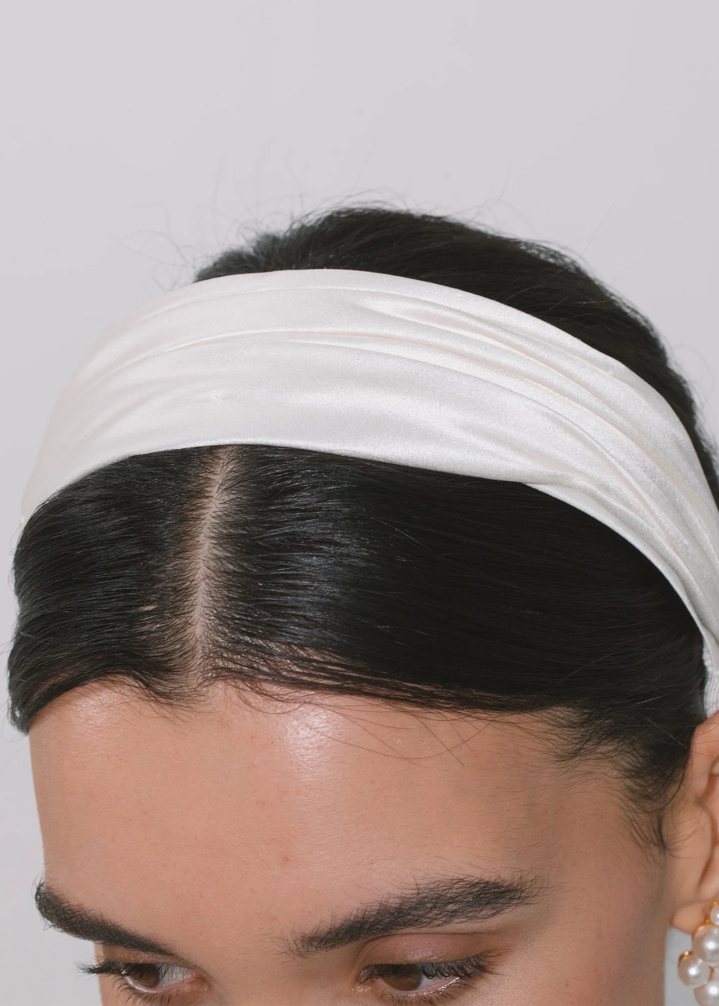 Introducing the all new Natasha Headband. This fresh silhouette features hand draped silk on our classic flexible wide headband base. Our handcrafted draping makes each headband completely one-of-a-kind and creates a beautiful depth of color. This style will be your new favorite for everyday, and pairs perfectly with earrings. Dimensions: 2 inch width