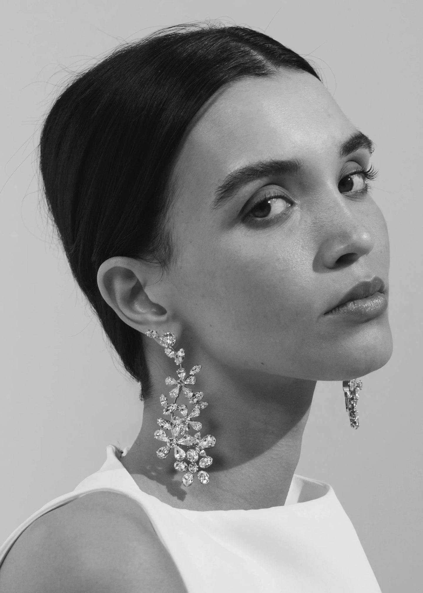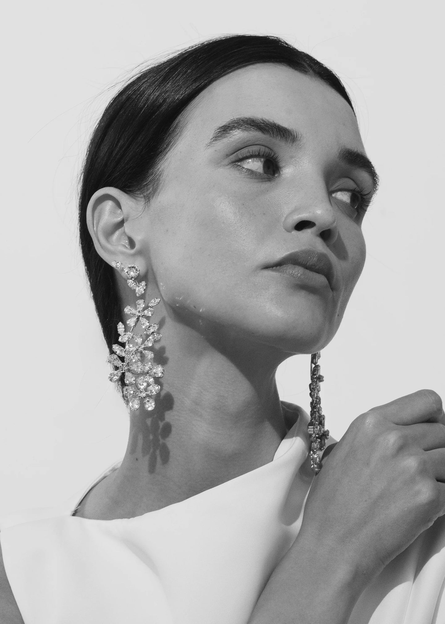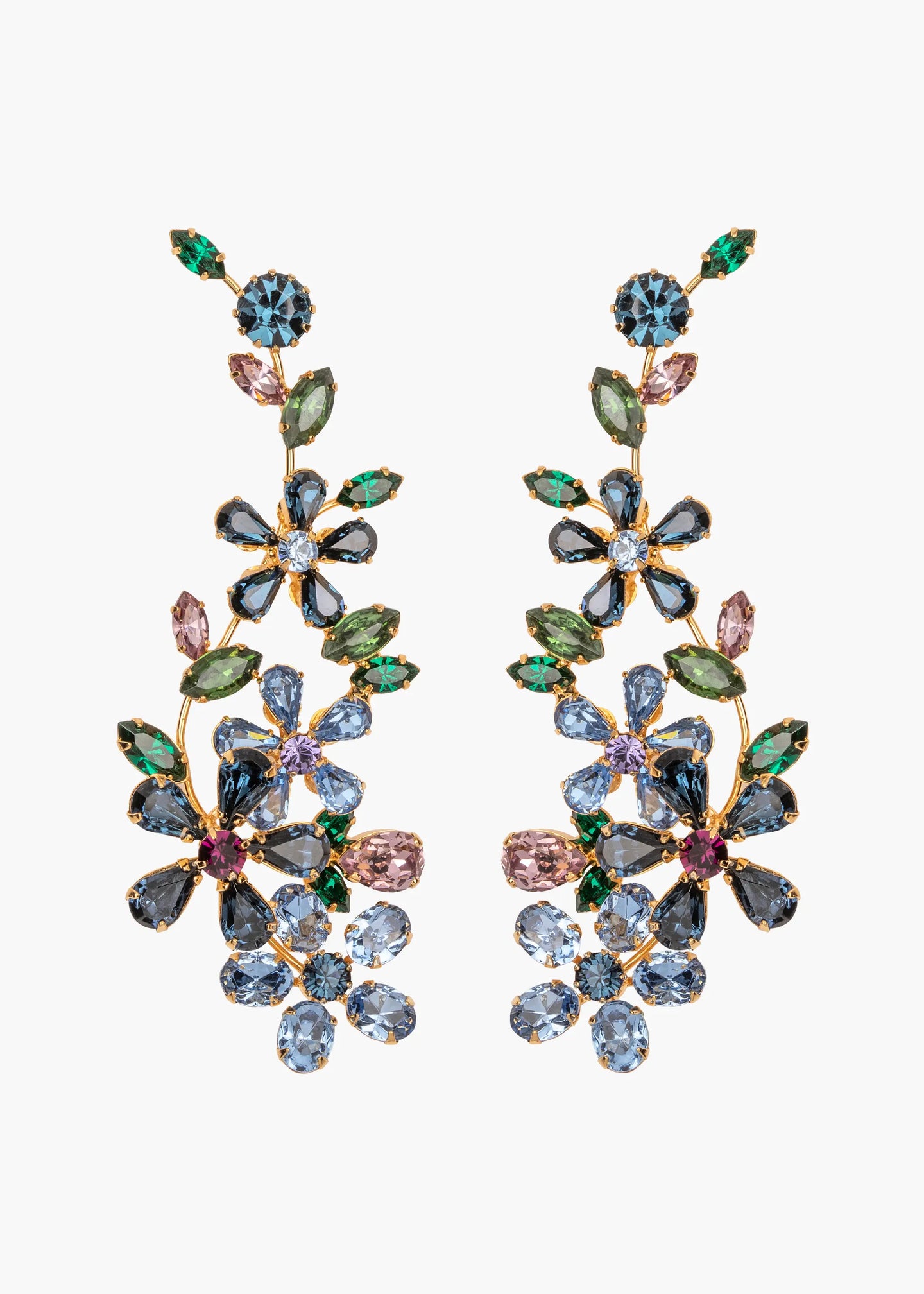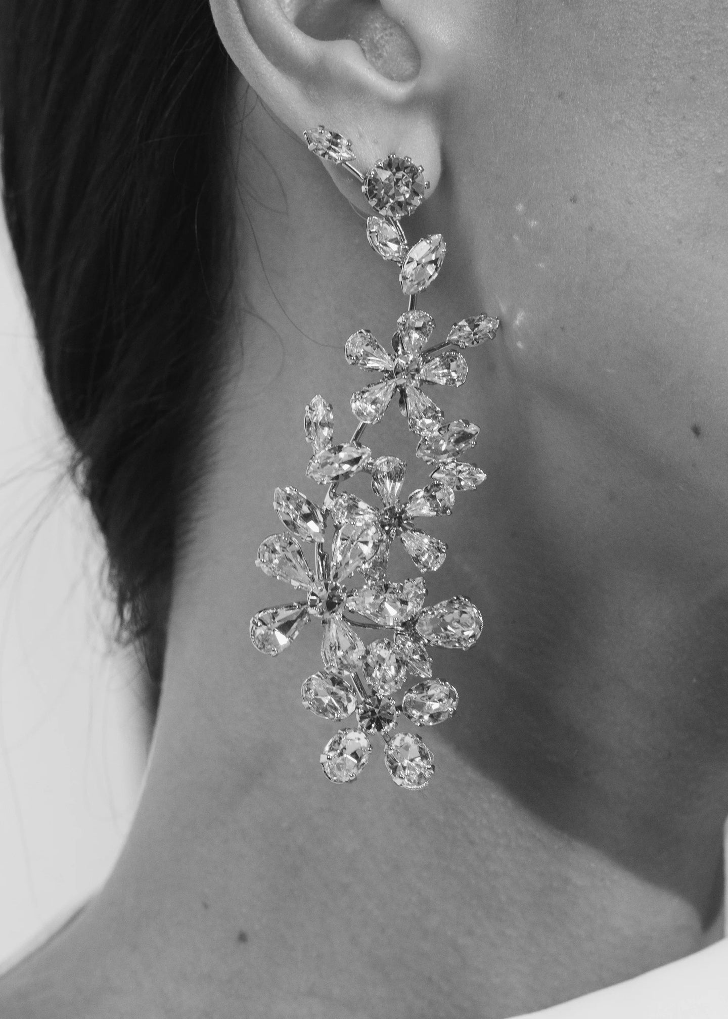 Thoughtfully designed to frame the face, the Mirella Earrings feature a swirling floral vine that feels formed by nature. Crafted by hand in New York, these earrings reference a garden, each flower designed with fine crystal stones, guaranteed to glimmer in candlelight. Though statement-making in scale, these earrings are lightweight for their size due to their hand-made construction.
