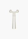 The Gretta Bow Barrette exudes the elegant insouciance of a ribbon casually tied in the hair, with the convenience of an easy-to-fasten barrette. The expertly draped silk ribbon stands out for its exceptional quality; each bow is crafted by hand in our Brooklyn studio. The automatic French barrette closure makes it versatile enough to wear in an endless number of hairstyles, in any type of hair.