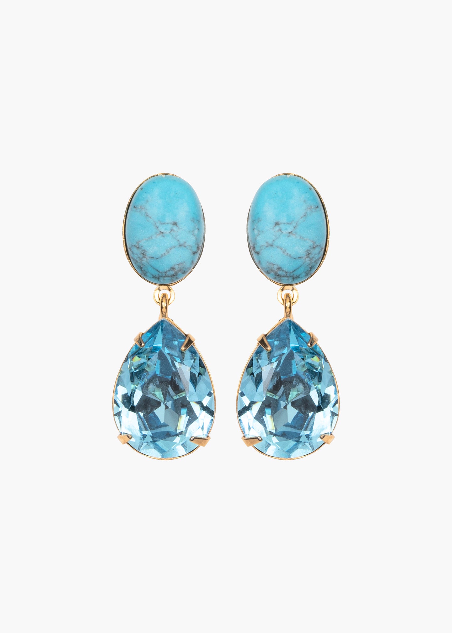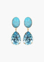 The Linette Earrings are made by hand in New York, featuring genuine semi-precious stones, which we adore for their natural variations. A pear-shaped Austrian crystal drop completes the look, adding movement that guarantees endless sparkle. Dimensions: 1.5 inch length