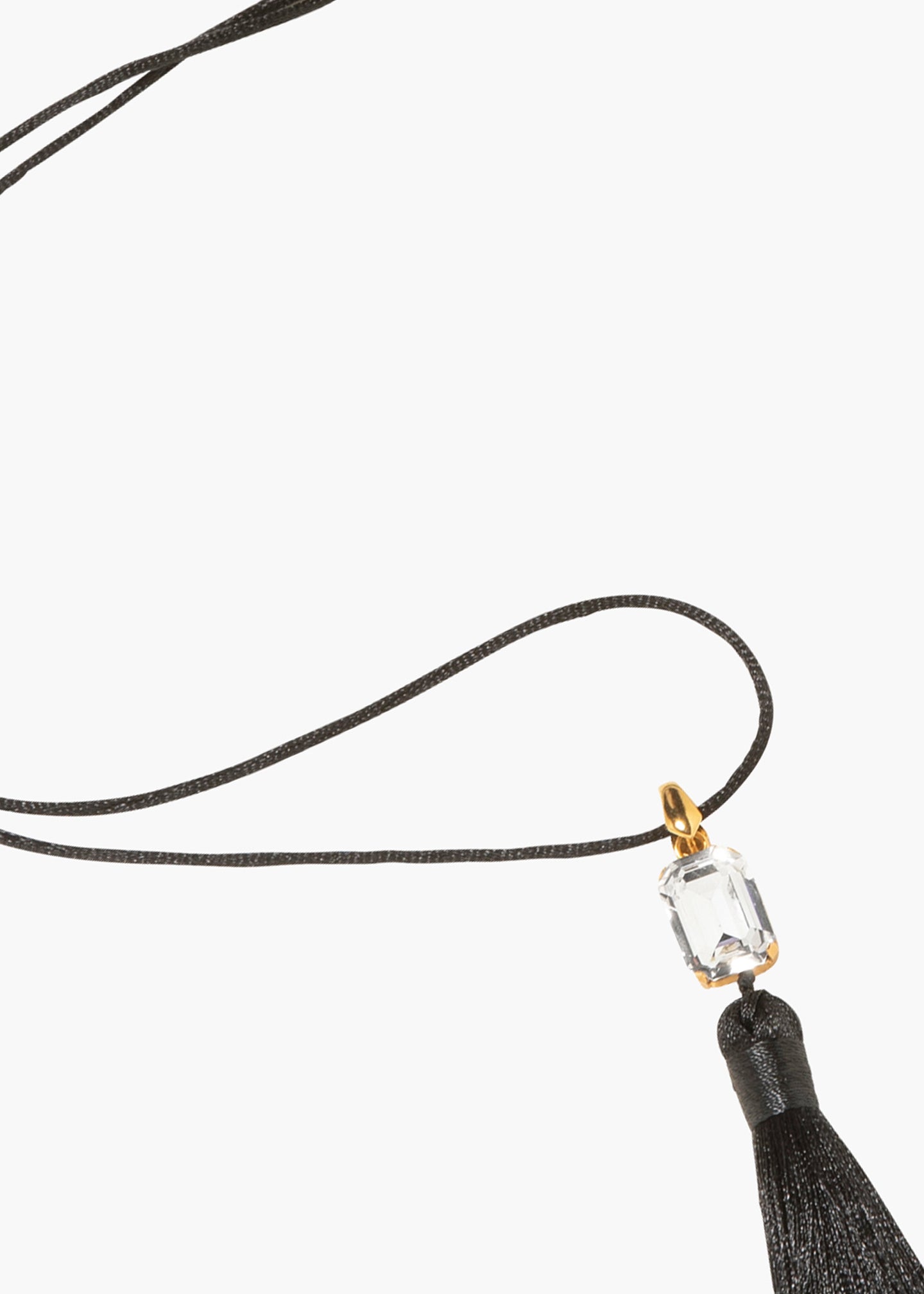 The Francine Necklace is a transformative finishing touch that sweeps any look up in its vintage-inspired allure. Made by hand in New York, the satin tassel is suspended from a single emerald-cut Austrian crystal, with 18-karat gold-plated finishings. The silk cord it sits on is fully adjustable to achieve a custom length. Dimensions: 40" cord length, 4.75" pendant with tassel length