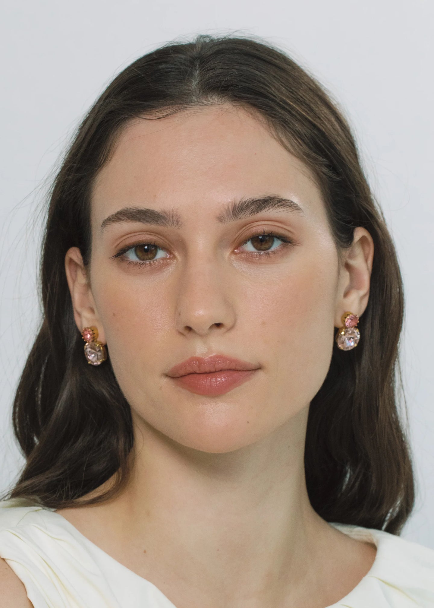 The Myrla Earrings are made by hand in New York from 18K gold or rhodium plated brass and crystal. They have a surgical-steel post, are nickel-free, and safe for sensitive skin. We recommend storing earrings in their dust bag while not in use, and avoiding contact with water, perfume, hairspray, and other chemicals.