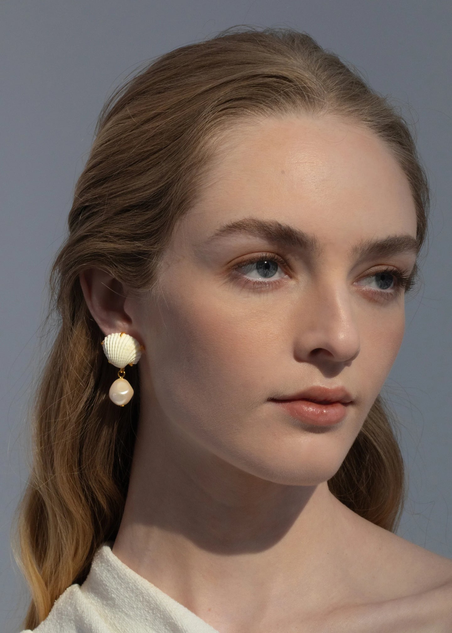 The Isola Earrings flawlessly offset the naturally matte finish of genuine seashells with gleaming baroque-shaped crystal pearl drops. Made in New York, the custom hand-formed settings are made with fine jewelry techniques for a finished look that celebrates the shell's beauty. The organic materials make each pair unique. Dimensions: 1.5 inch length