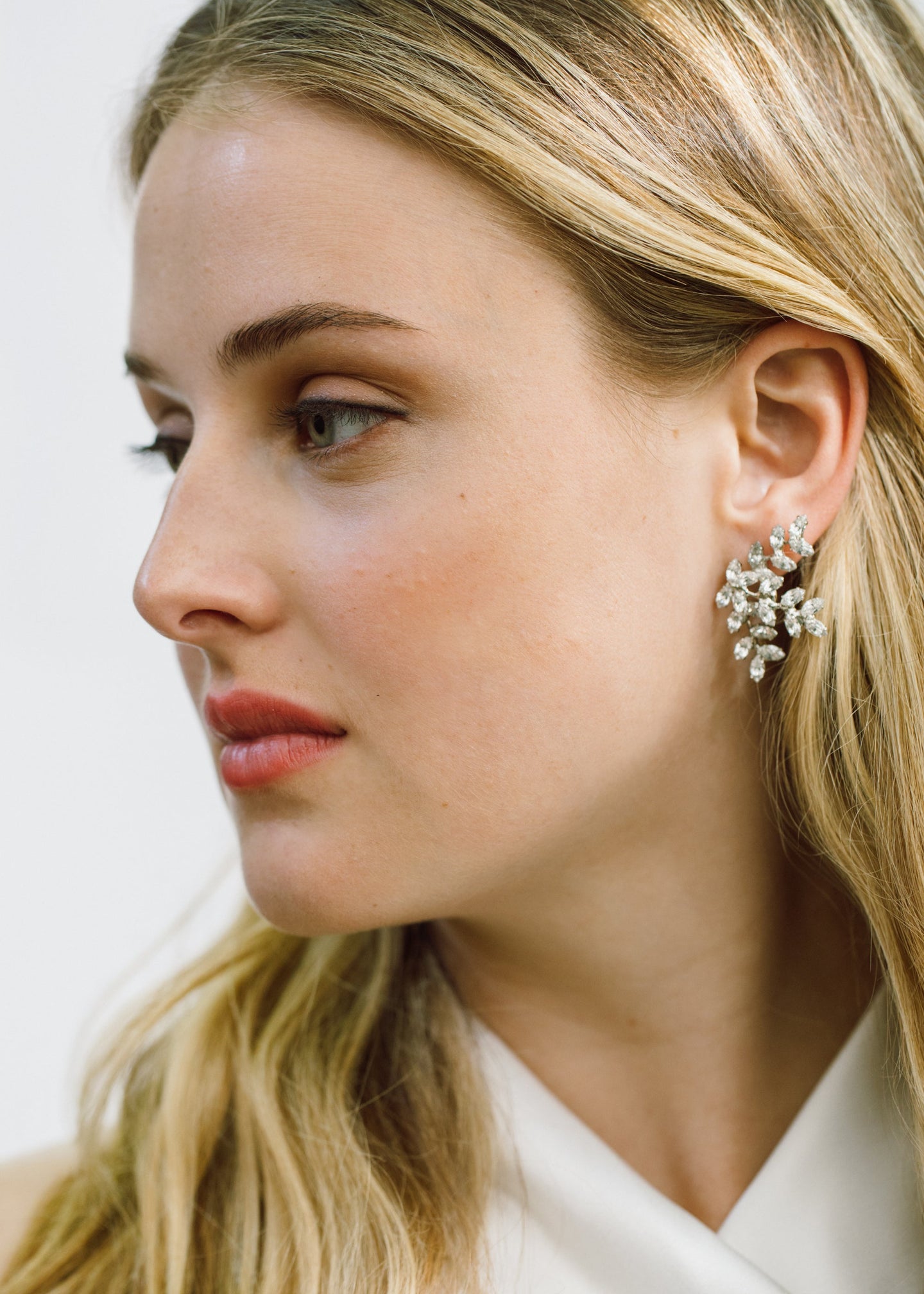 The Viniette Earring is a post earring with a surgical-steel post. Our earrings are nickel-free and safe for sensitive skin. These earrings are crafted by hand in New York from glass crystals. We recommend storing earrings in their dust bag while not in use, and avoiding contact with water, perfume, hairspray, and other chemicals.