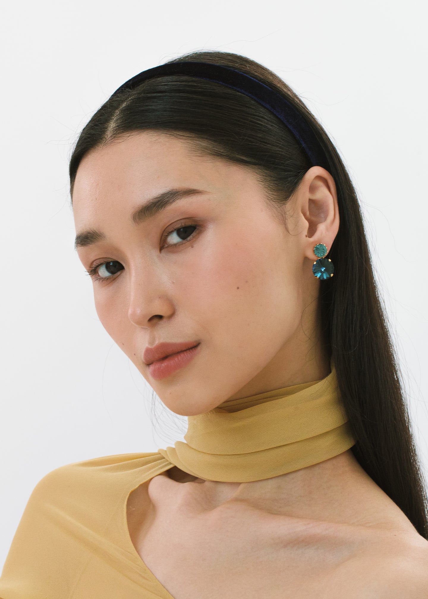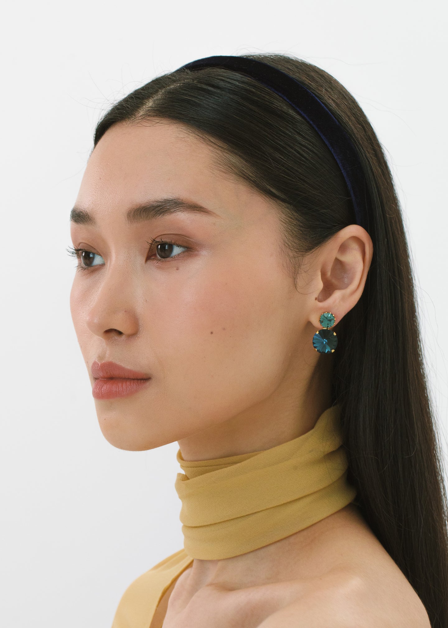 The Lacey Headband is made by hand in New York from silk velvet and lined in grosgrain to ensure ultimate comfort and promote hair health. We recommend storing headbands in their dust bag while not in use. Avoid contact with water, perfume, and other chemicals, including hairspray, which should be used only before placement in the hair.