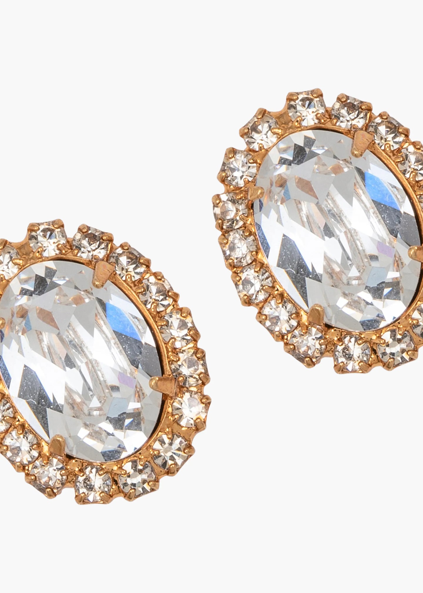 An earring that speaks volumes without saying much, the Clara Earrings are a quietly luxurious wardrobe staple. These fine crystal earrings feature a sizable stone set in a halo, for maximum impact. Their classic shape and demure scale makes these studs an ideal add-on with other accessories. Dimensions: .5 inch length