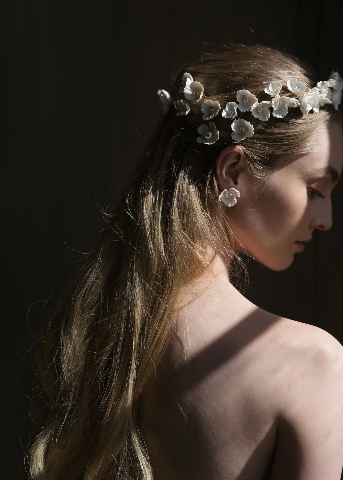 Straightforward yet breathtaking, the Karissa Earrings are the dreamiest finishing touch. In a process that has been years in the making, polymer clay is hand-pressed to create each layered petal, for an incredibly realistic bloom. Finished with pearl details, these earrings pair perfectly with other pearl hair accessories and jewelry; the matching Karissa Bobby Pin Set completes the look. Dimensions: 7/8" in length, 1" in width.