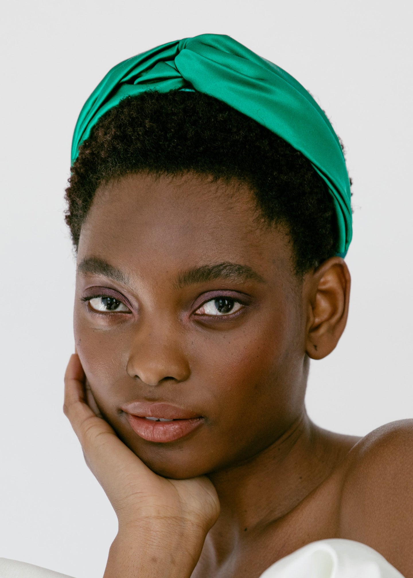 The Twist Headband in Silk Satin is made by hand in New York from silk satin, and lined in silk to ensure ultimate comfort and promote hair health. The headband tips are wrapped in silk grosgrain, making it comfortable to wear. We recommend storing headbands in their dust bag while not in use. Avoid contact with water, perfume, and other chemicals, including hairspray, which should be used only before placement in the hair.