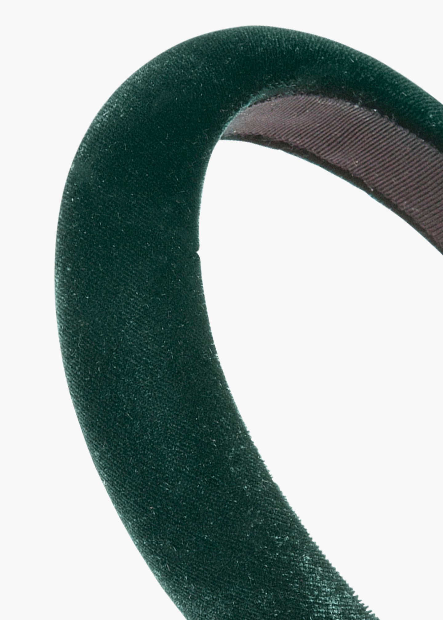 This Tori Headband is made in New York from silk velvet, with a silk grosgrain ribbon interior. We recommend storing headbands in their dust bag while not in use. Avoid contact with water, perfume, and other chemicals, including hairspray, which should be used only before placement in the hair.