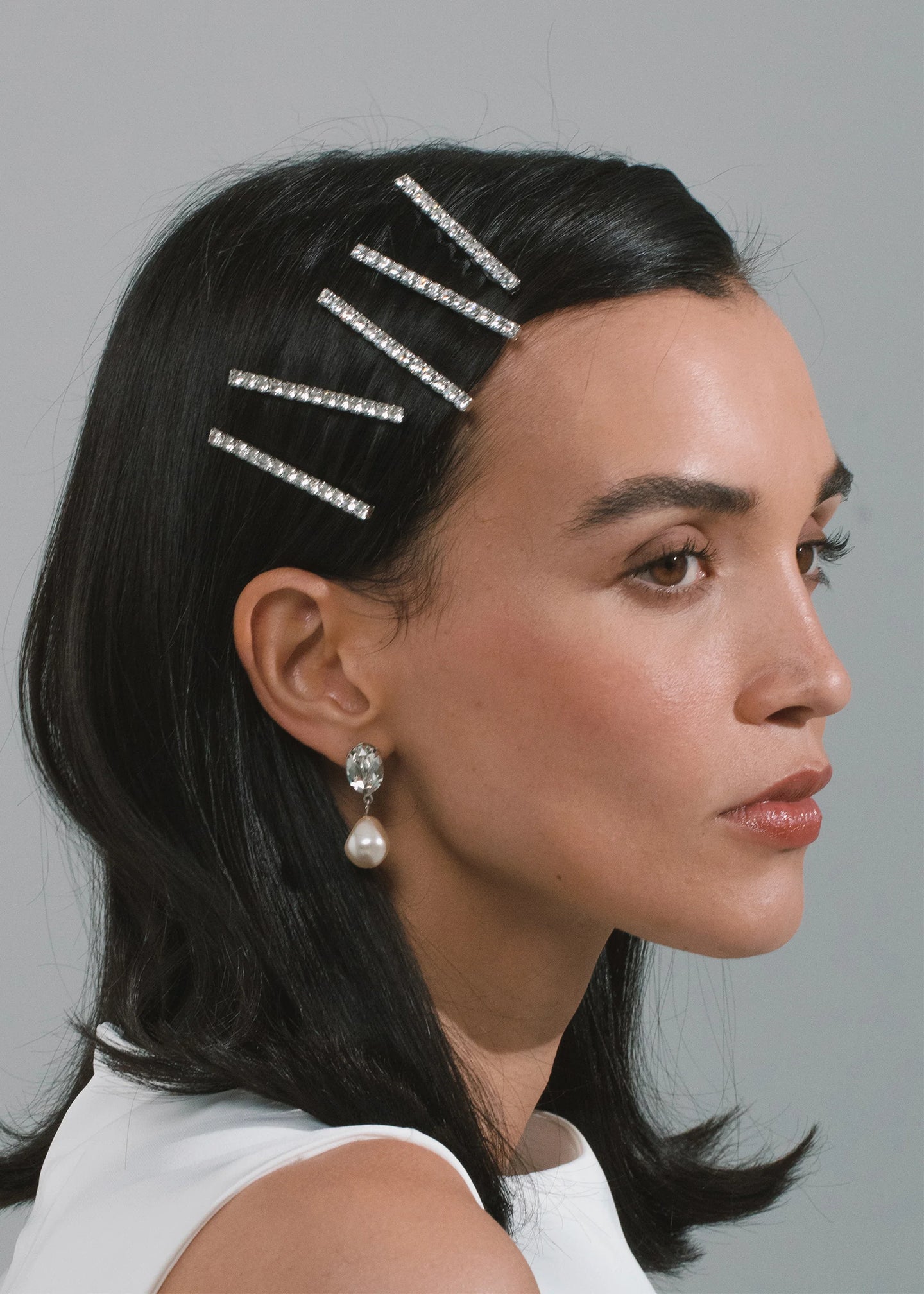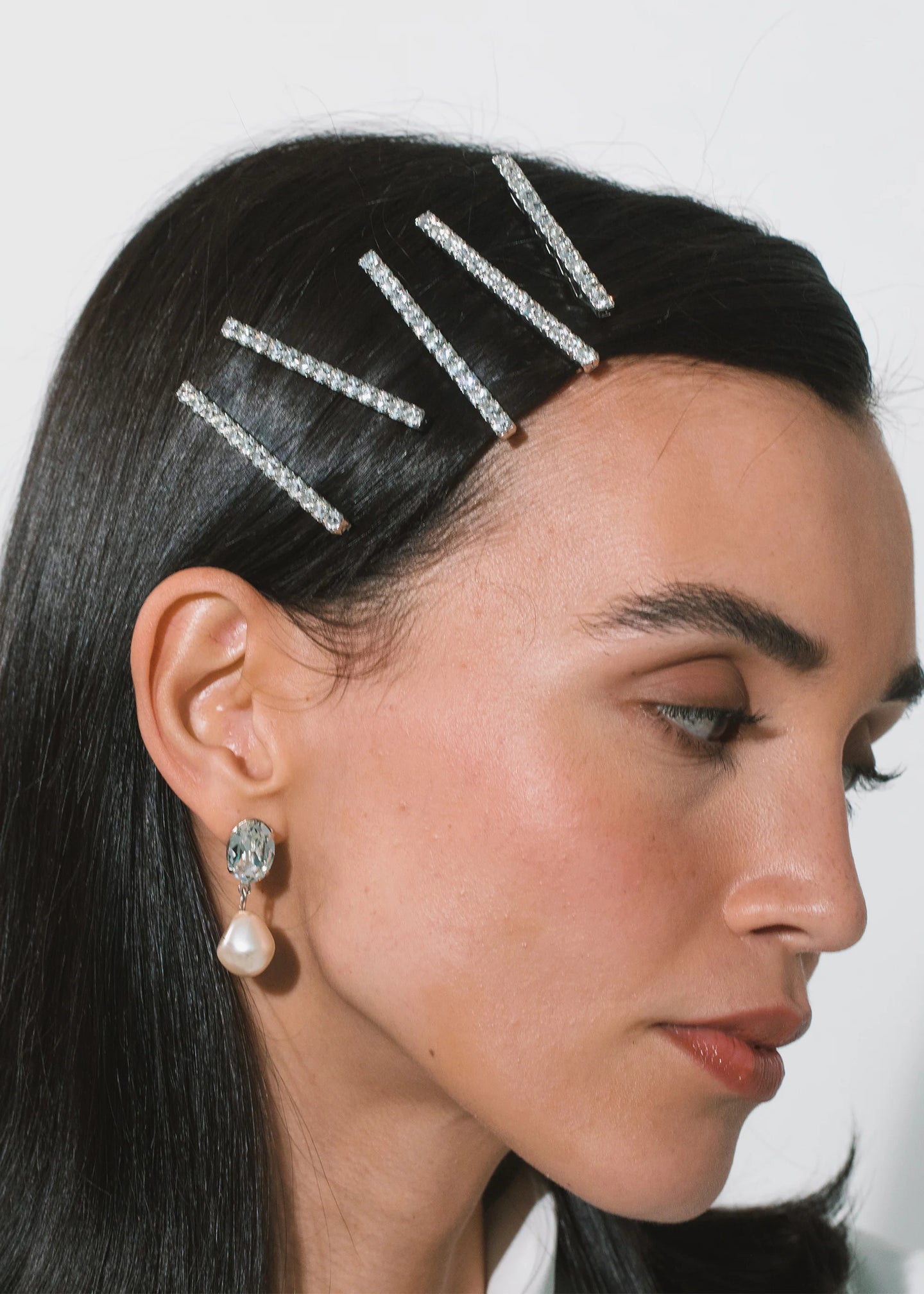 The Gwen Bobby Pins are a set of two, made in New York of Swarovski crystal on a durable steel bobby pin, designed to stay firmly in place, once other pins have the hairstyle securely fastened. We recommend treating each pin as you would a piece of jewelry, and storing in the dust bag when not in use. Avoid contact with water, perfume, and other chemicals, including hairspray, which should be used before placement in the hair.