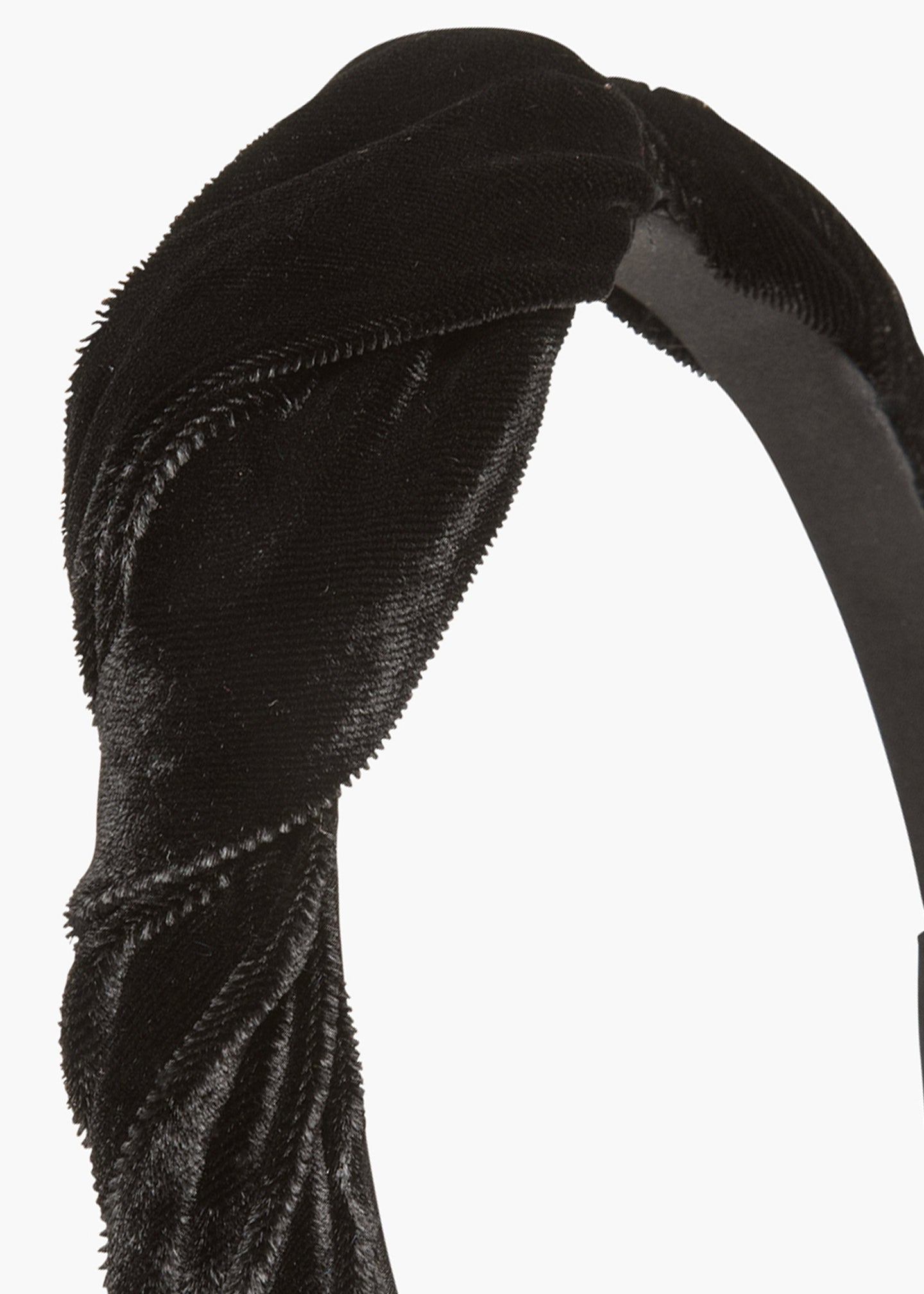 The Paola Headband is handcrafted in New York from hand manipulated rayon silk velvet , and is lined in grosgrain to ensure ultimate comfort and promote hair health. We recommend storing headbands in their dust bag while not in use. Avoid contact with water, perfume, and other chemicals, including hairspray, which should be used only before placement in the hair.