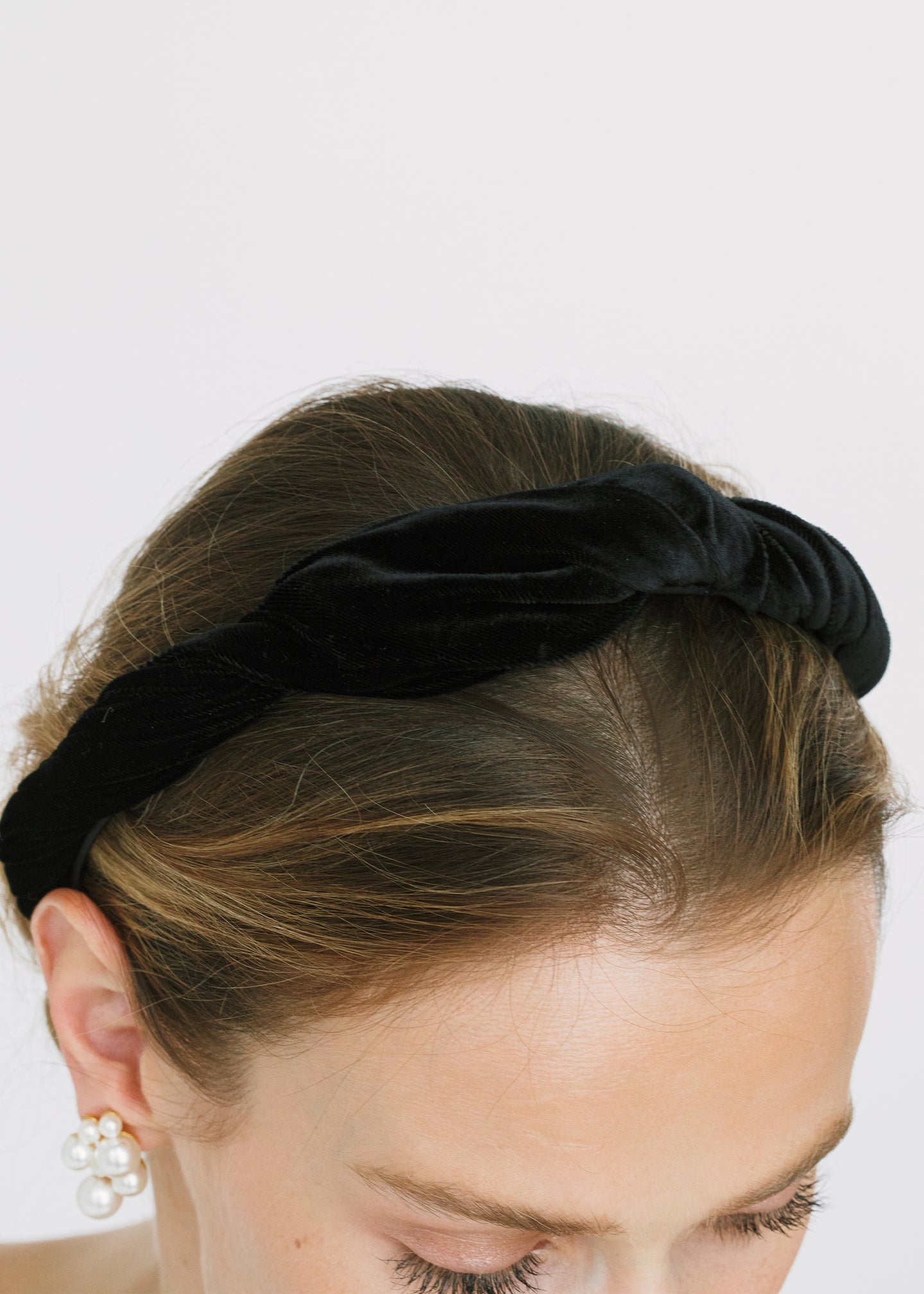 Hand crafted in our New York studio, the Paola Headband features rich silk velvet with elegant ruching, blending modern sophistication with Renaissance-inspired charm. A refined finishing touch that elevates both day and evening dress.