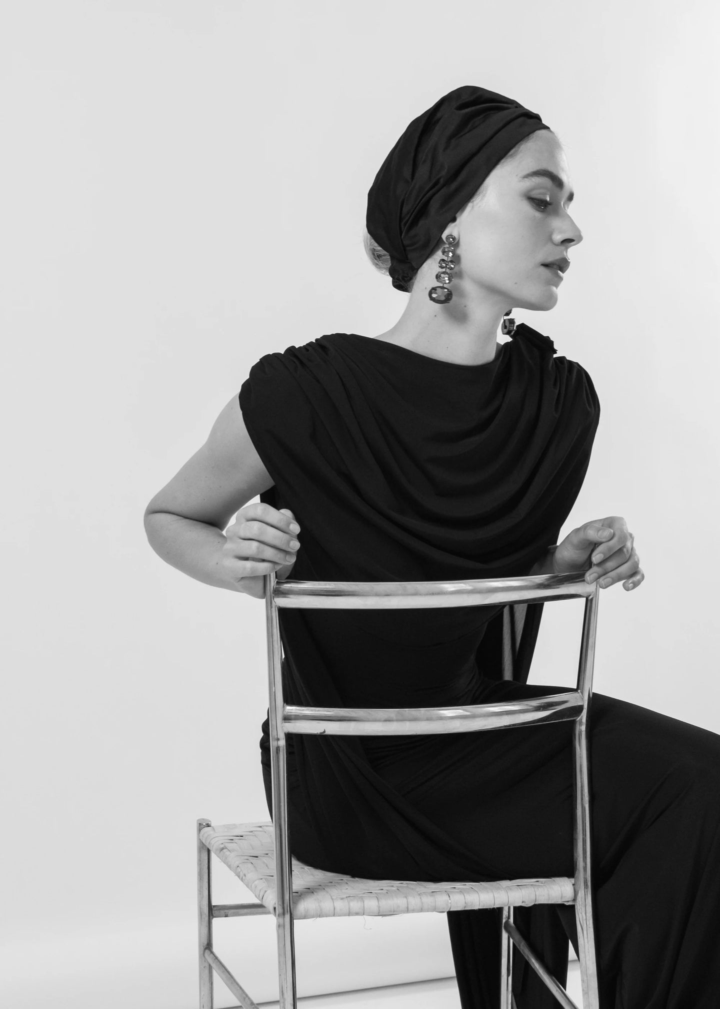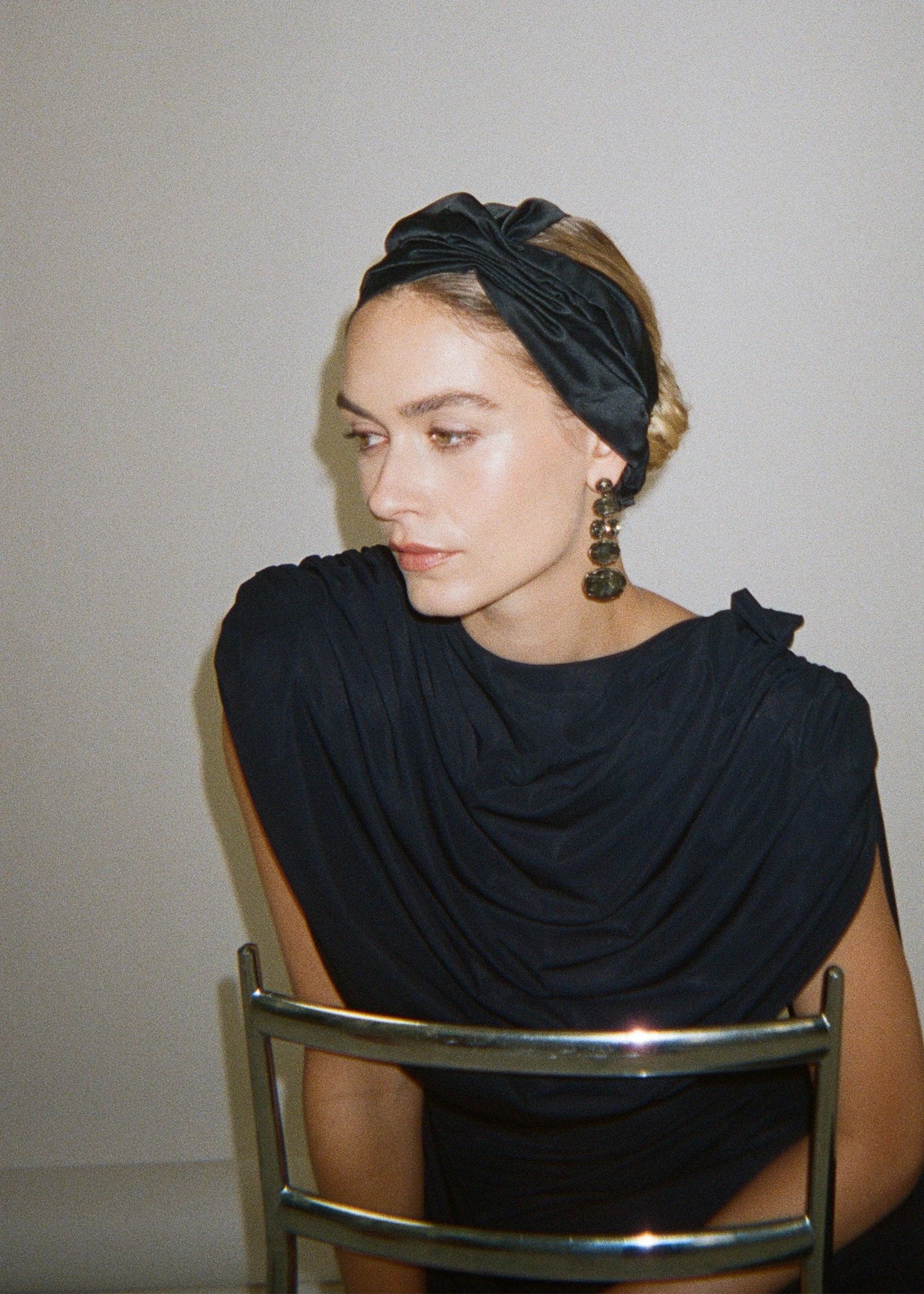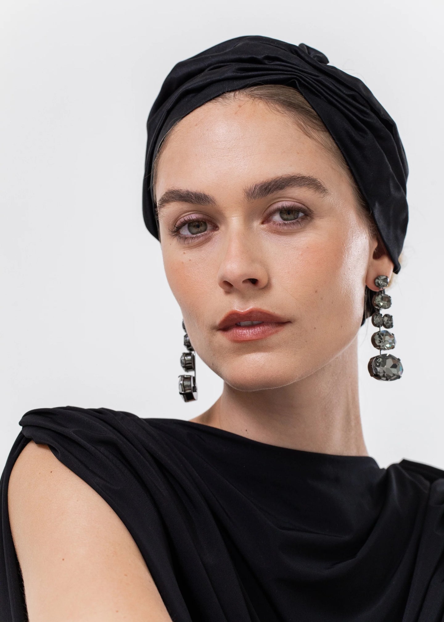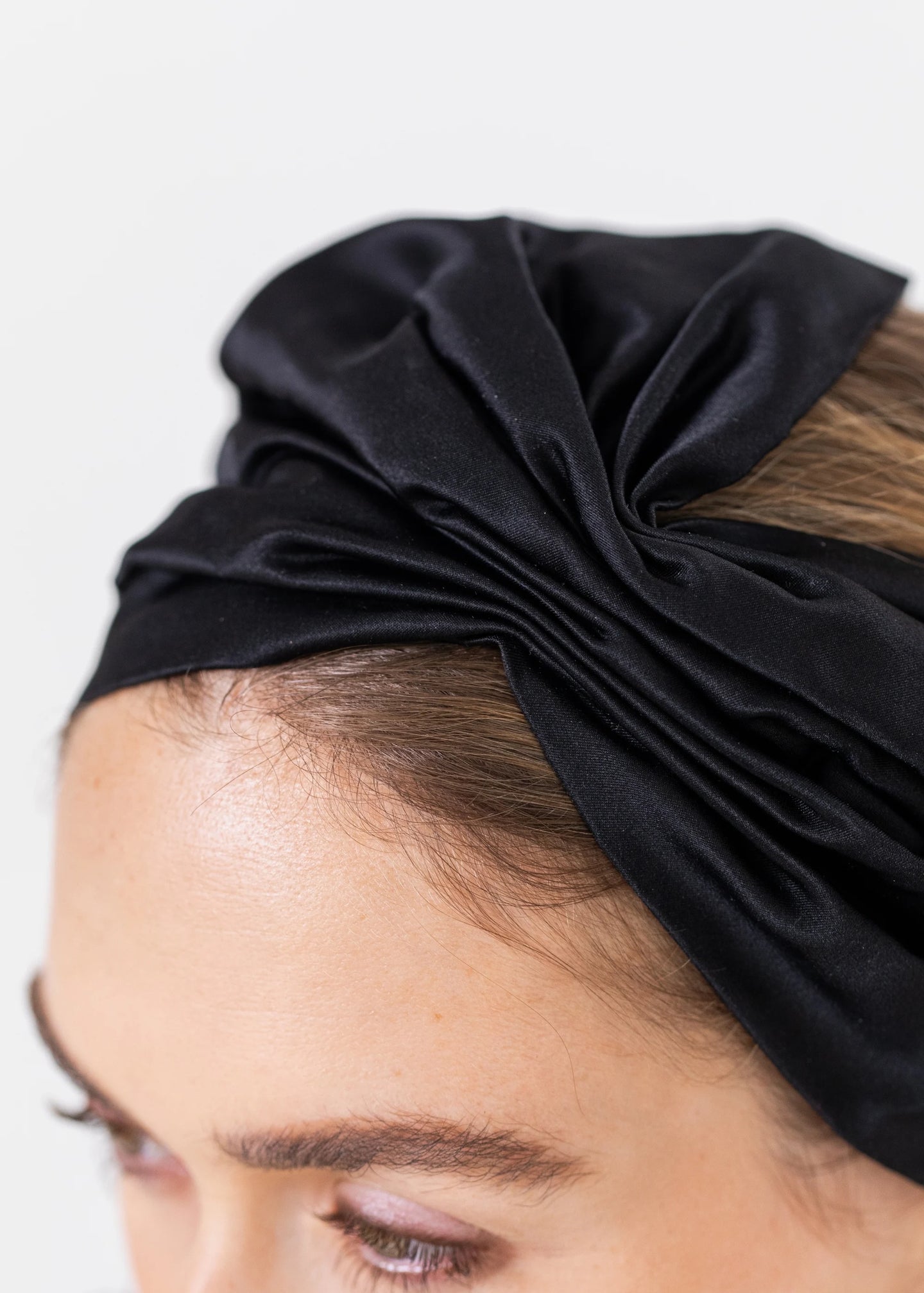 The Dinah Headwrap is made in New York from hand-draped silk duchesse satin, featuring a hand-gathered abstract bow motif accent. We recommend storing headwraps in their dust bag while not in use. Avoid contact with water, perfume, and other chemicals, including hairspray, which should be used only before placement in the hair.