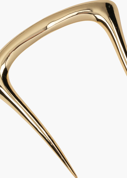 A compelling case for the classic hair pin, the Effie Hair Pin has a graceful simplicity that never fails to pull an ensemble together. Its golden surface complements the sleekness of the design. This piece single-handedly elevates any look, and is surprisingly easy to style in the hair.