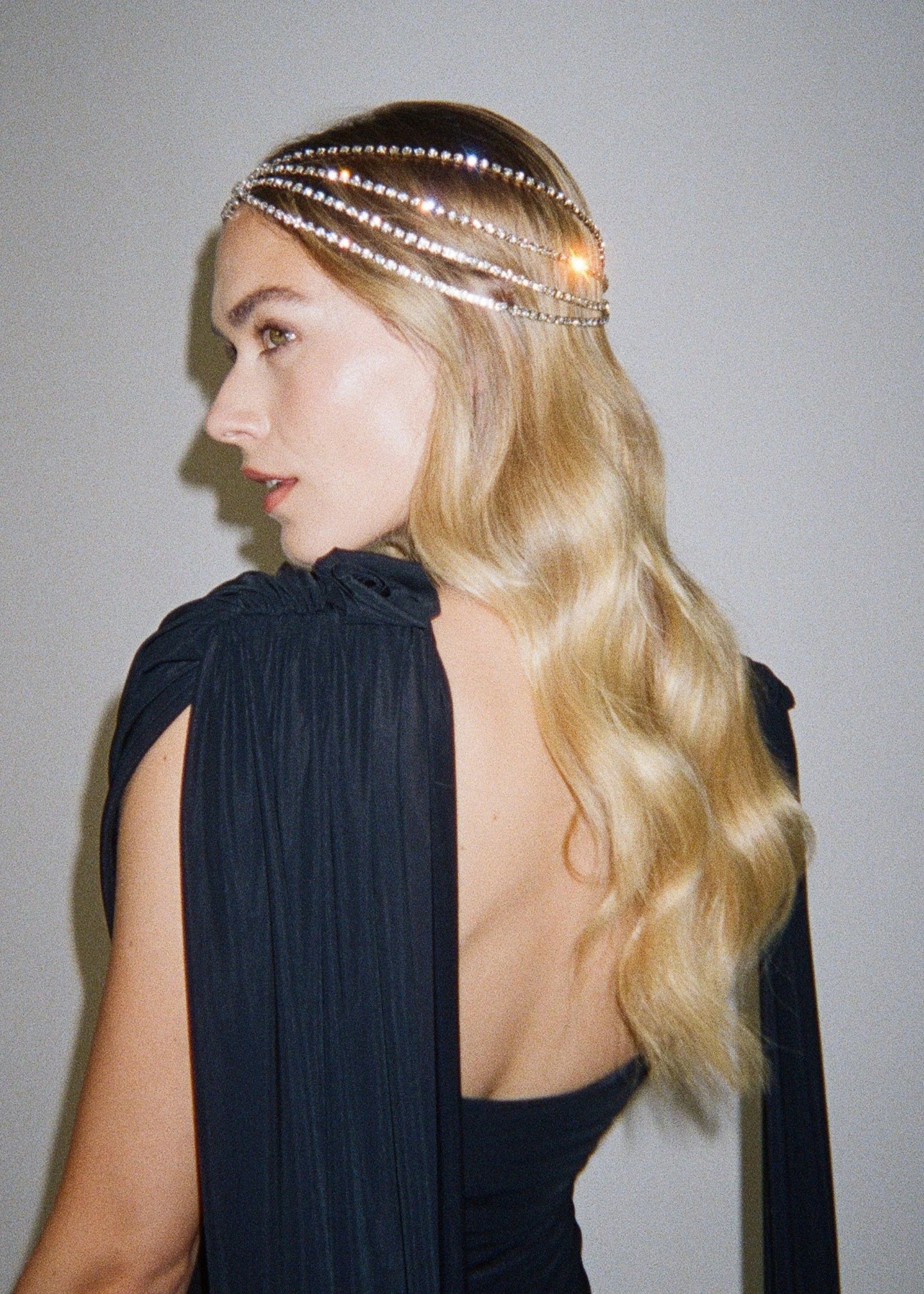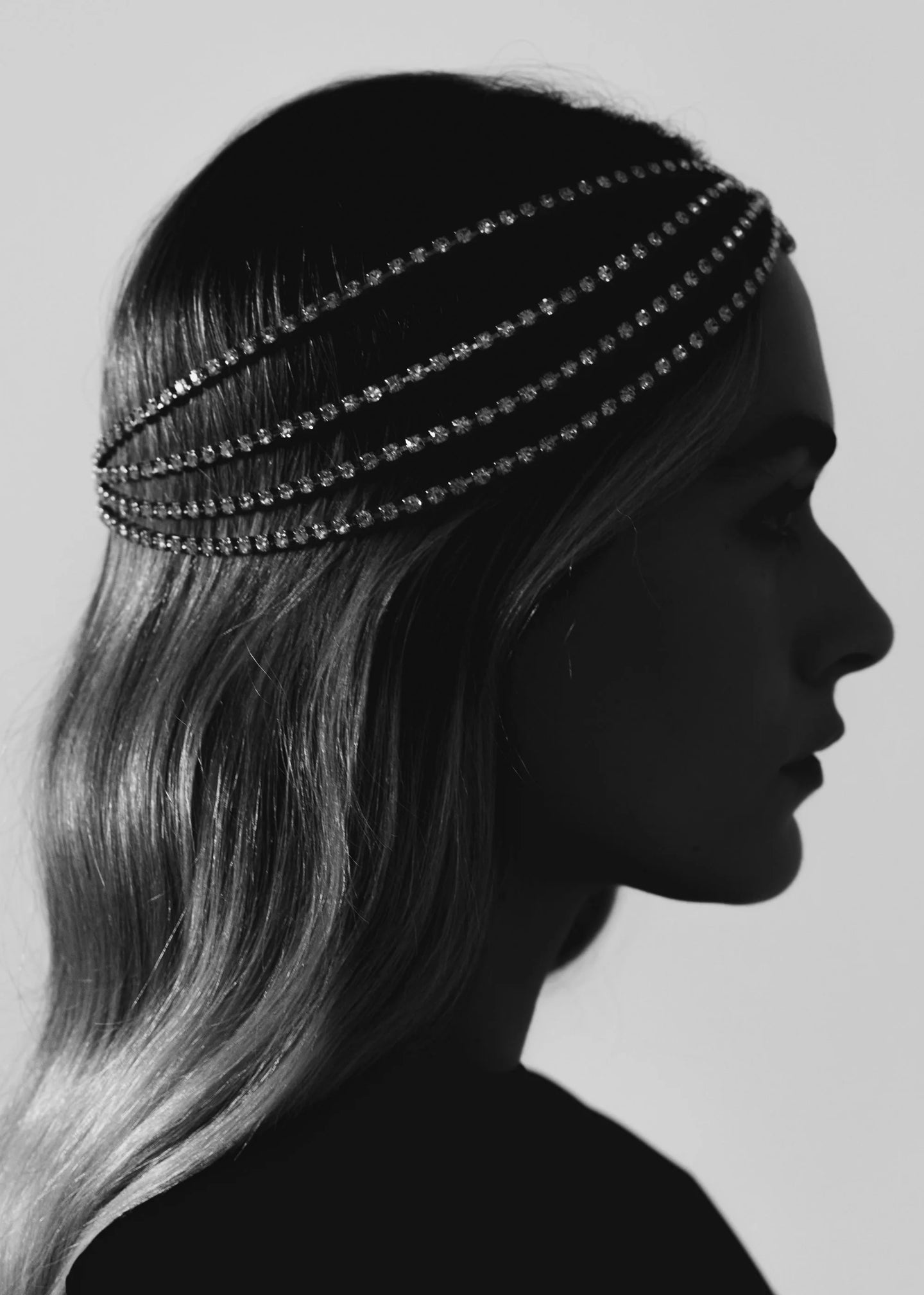 The Zelina Diadem is hand-crafted in New York from Austrian crystals and plated in rhodium. We recommend storing diadems in their dust bag while not in use. Avoid contact with water, perfume, and other chemicals, including hairspray, which should be used only before placement in the hair.