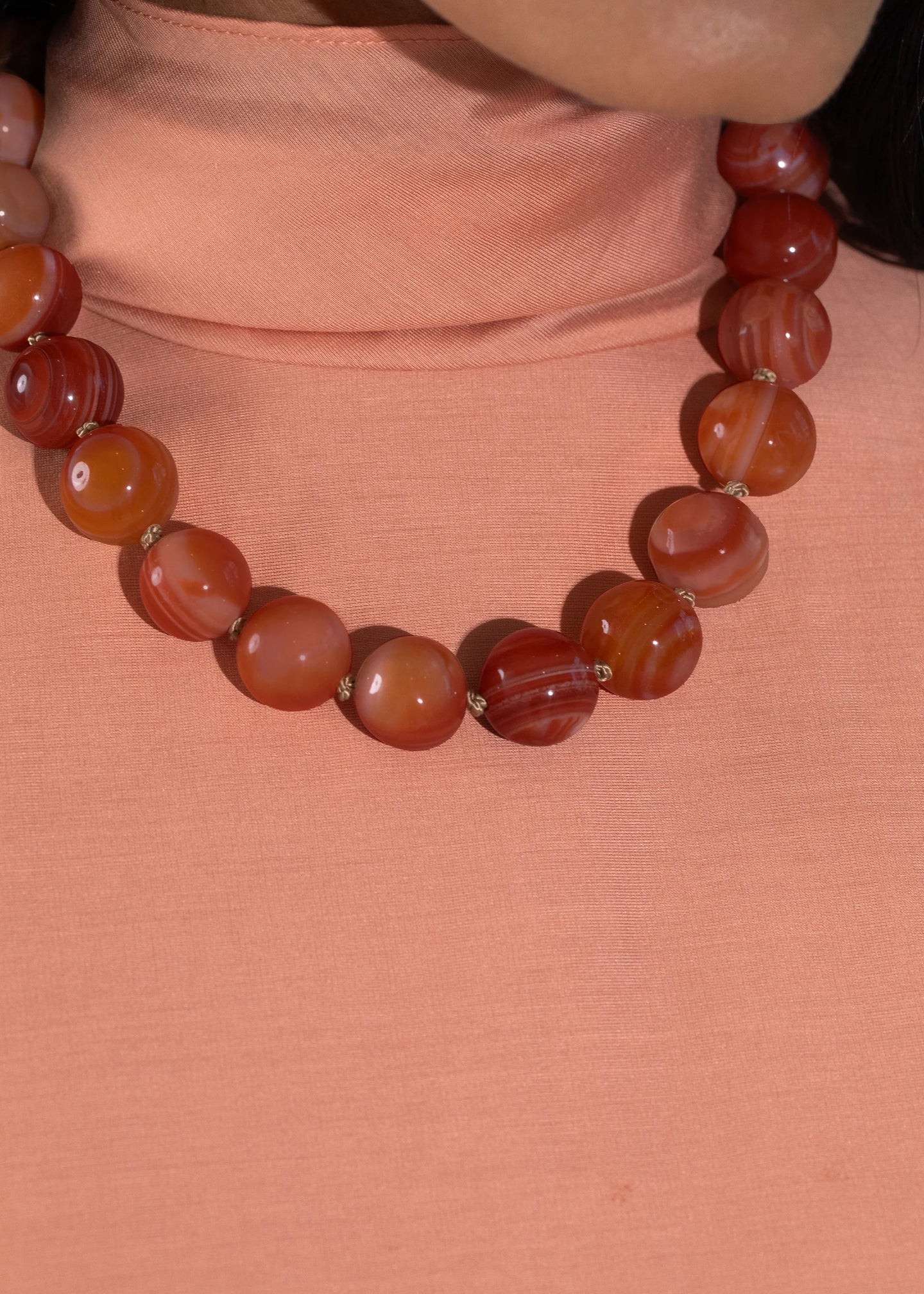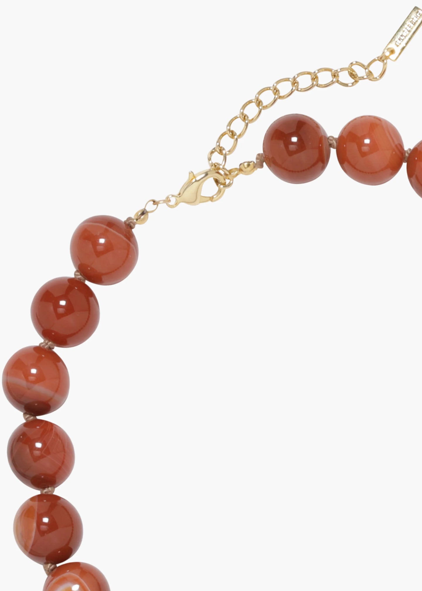 The Louisa Necklace is a strand of semi-precious gumballs, their playful size and shape juxtaposed by the preciousness of the stones. Made by hand in New York, the necklace is hand-knotted between each stone and strung with turquoise, jade, malachite, or banded botswana agate. Complete with 18-karat gold-plated finishings, the length is adjustable with an extender chain, making this especially easy to stack and layer with other semi-precious necklaces in our collection.
