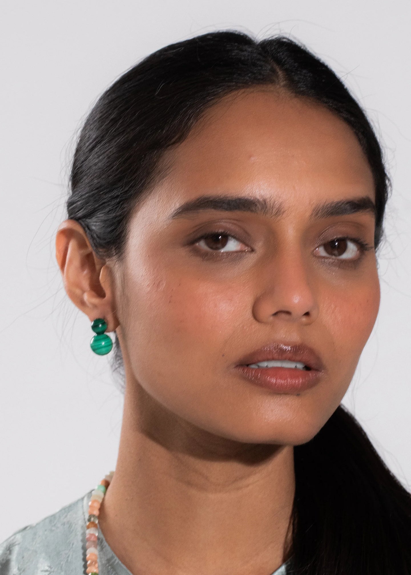 The Cara Earrings are made by hand in New York from semi-precious stone elements. All stones have natural variances in color and markings that make each one unique. They have a surgical-steel post, are nickel-free, and safe for sensitive skin. We recommend storing earrings in their dust bag while not in use, and avoiding contact with water, perfume, hairspray, and other chemicals.