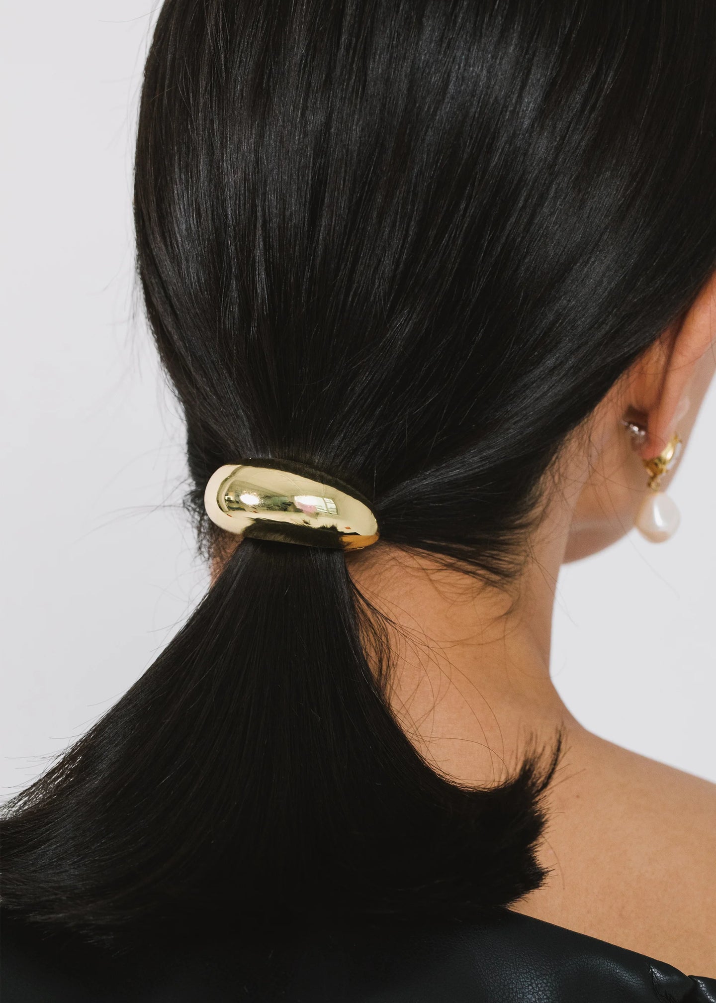 The Mona Ponywrap breathes chic new life into any ponytail. The modern, bulbous shape flawlessly sets the scene for its 18-karat-gold plated or rhodium plated shine. We love layering multiples at once for a dramatic, bespoke look. Dimensions: H: 1/2 in x L: 1 3/4 in Elastic: 3 1/2 in