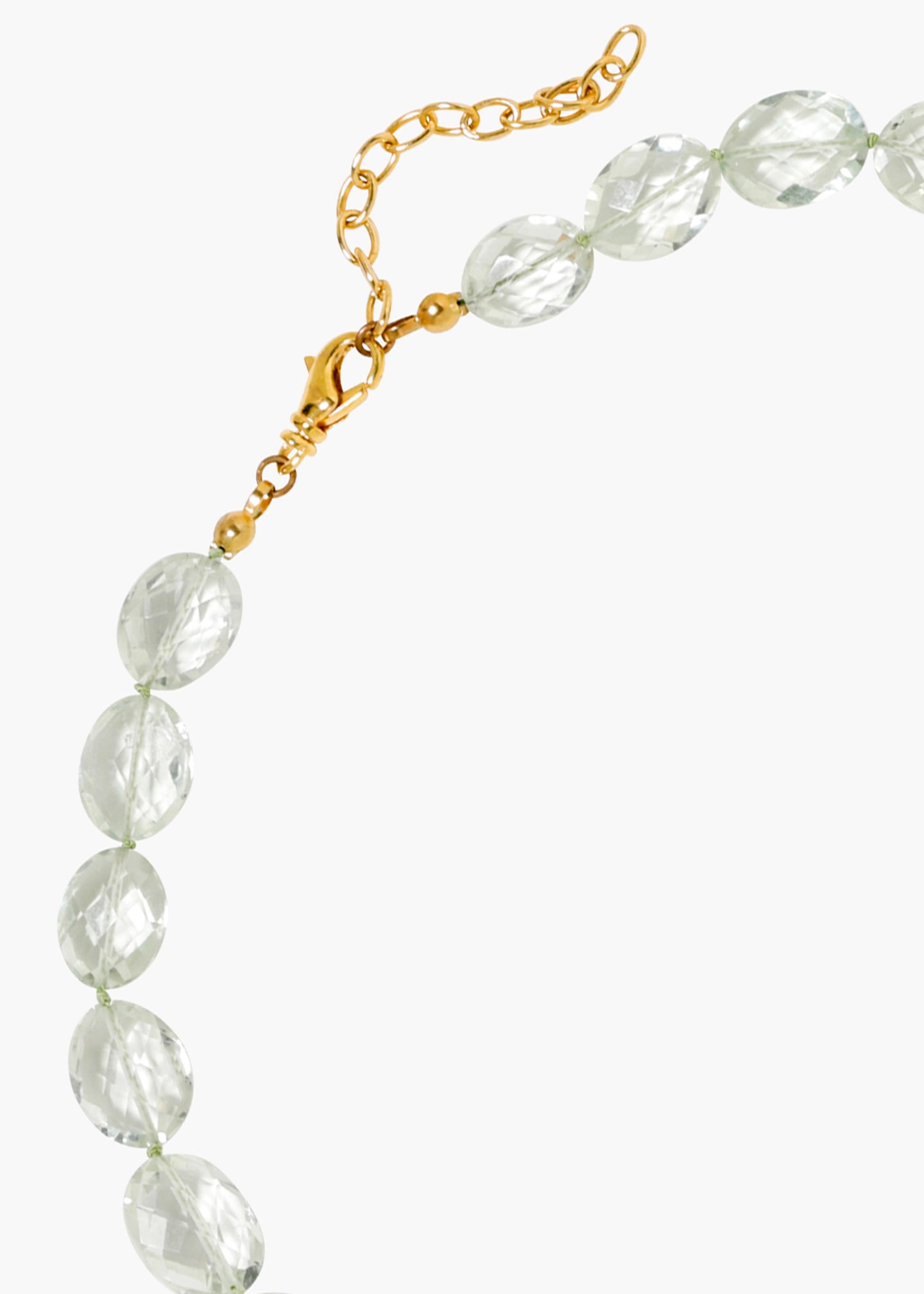 A beautiful example of material-driven design, we fell in love with these semi-precious green amethyst gems, and the Claire Necklace ensued. The special cut of the stones, in a modified cushion shape, allows light to pass through and cast a spellbinding sparkle, uniquely highlighting their natural beauty. Made by hand in New York and complete with 18-karat gold-plated details, the length is adjustable with an extender chain, making this especially easy to stack and layer with our collection of semi-precious necklaces.