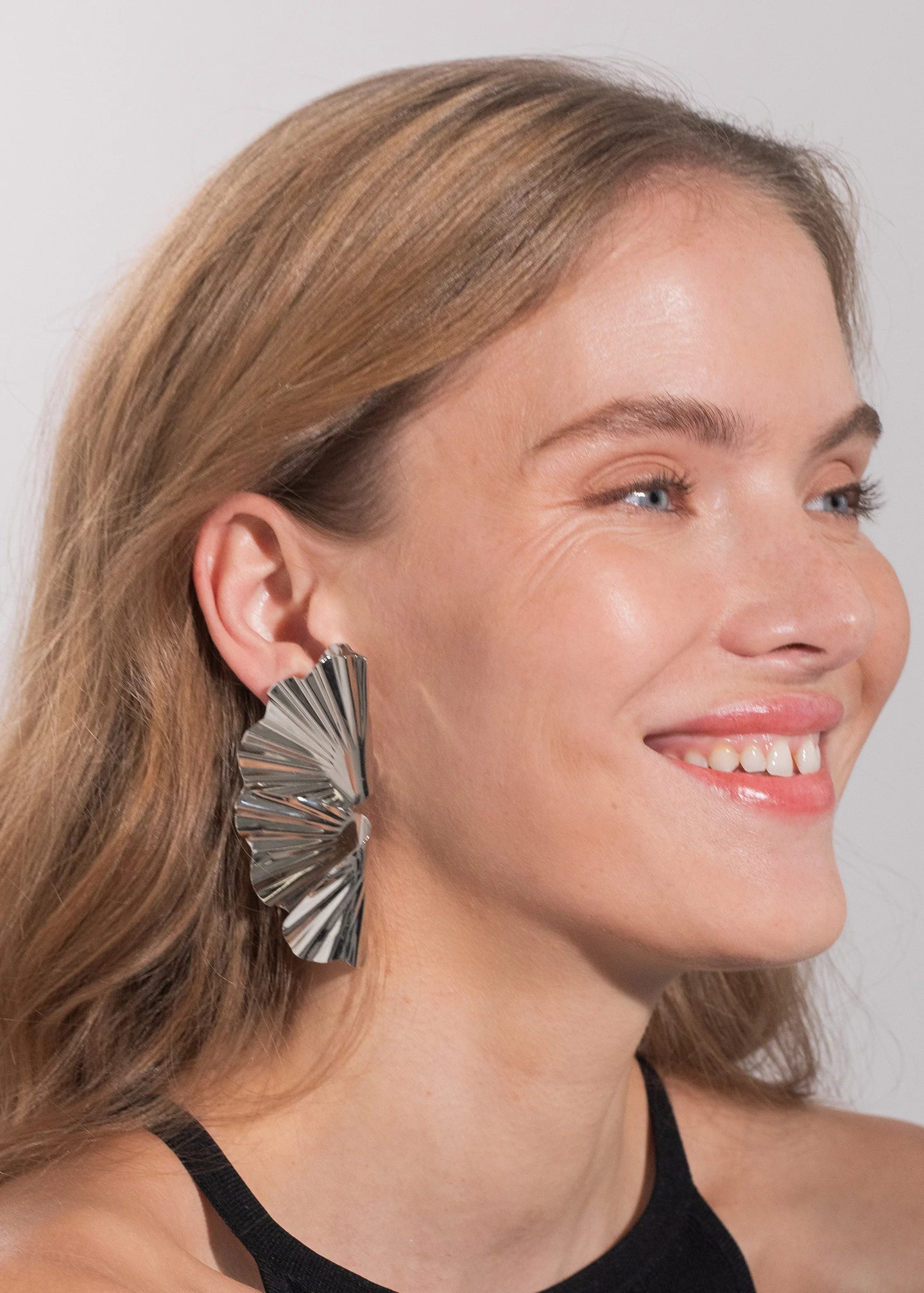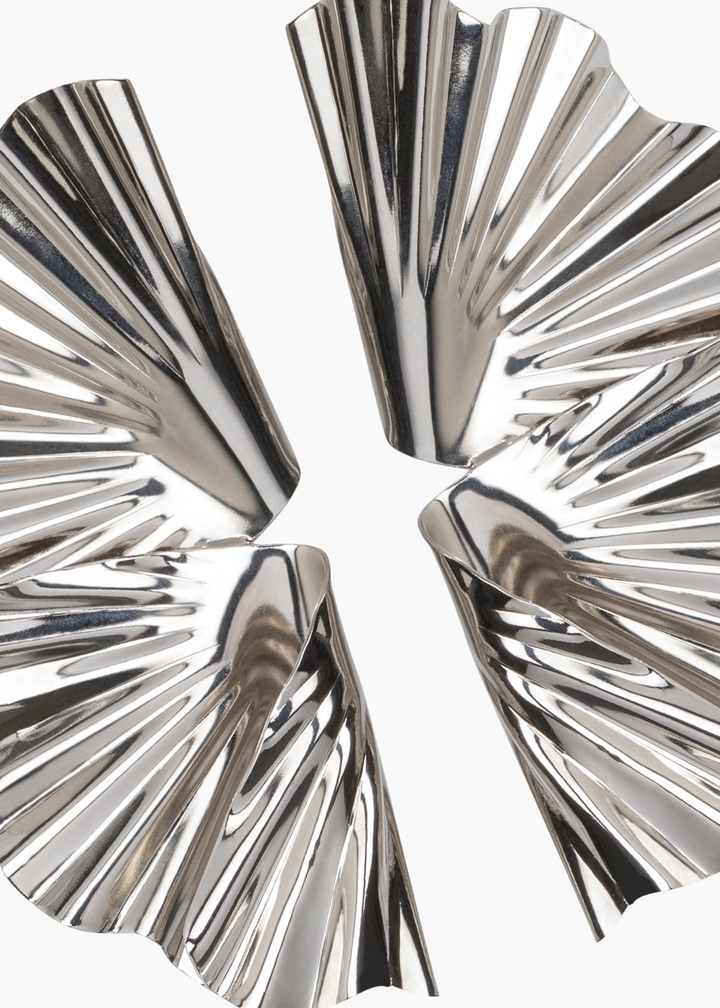 The Darya Earrings cleverly draw upon the natural ripples of the ocean in a face-framing accoutrement. The earring's sculptural ridges are imbued with kinetic energy, mimicking the motion of the sea. The organic shape combined with the high-shine silver finish creates awe-inspiring boosts of light gleaming from their surface. Dimensions: 3 inch length