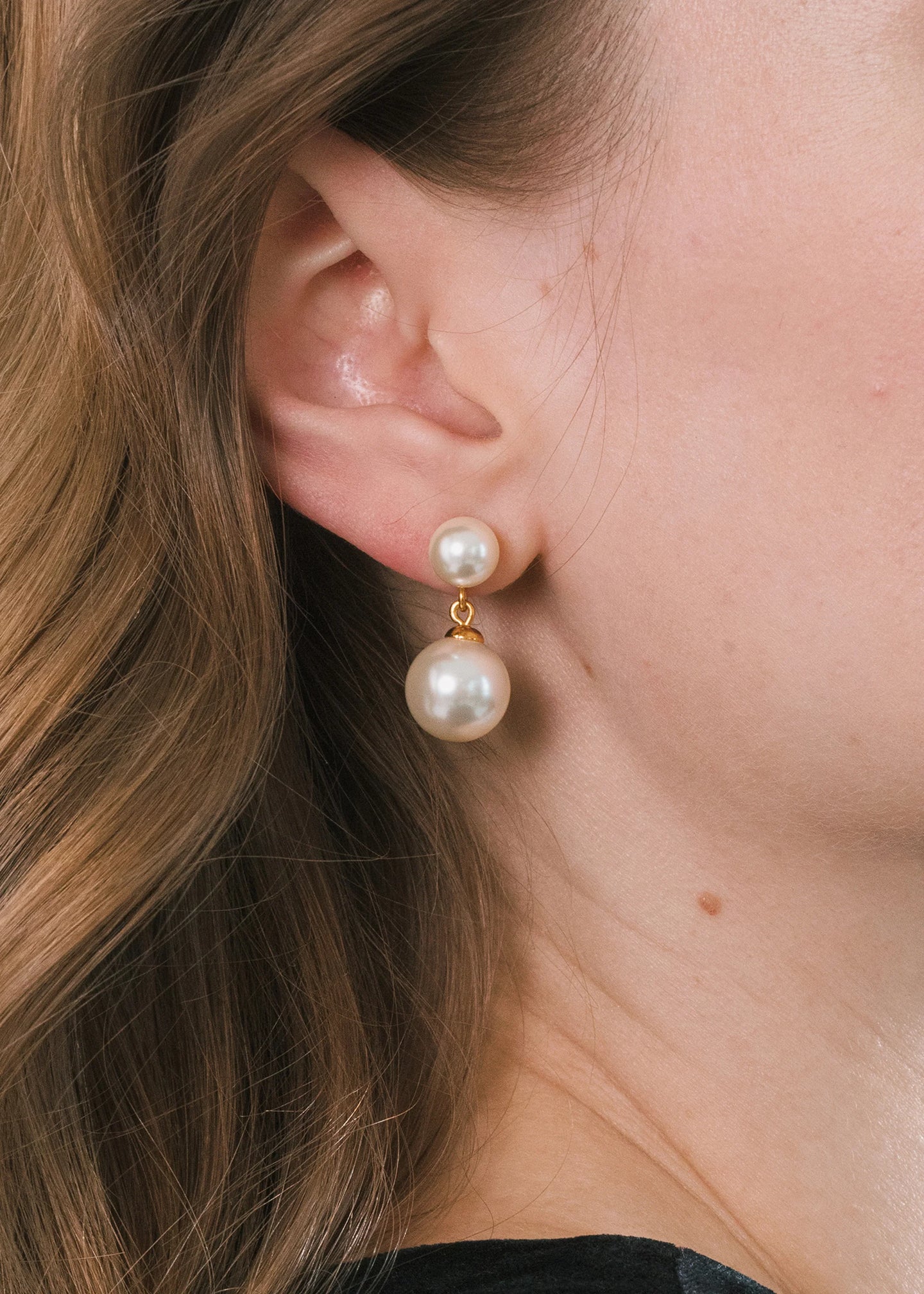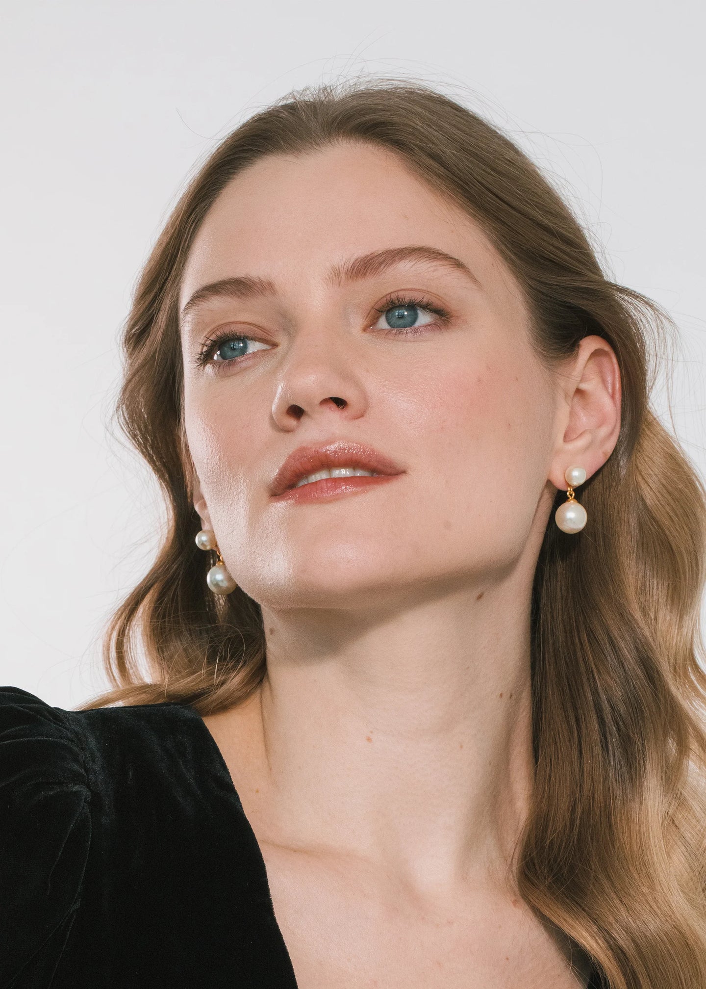 The Paige Earring is our modern update on a classic pearl drop. The dangling crystal pearls have a naturally graceful movement, but the size is subtle so as not to overwhelm your ensemble. You'll wear the Paige Earring with literally everything, but we especially love these with our other pearl hair accessories.
