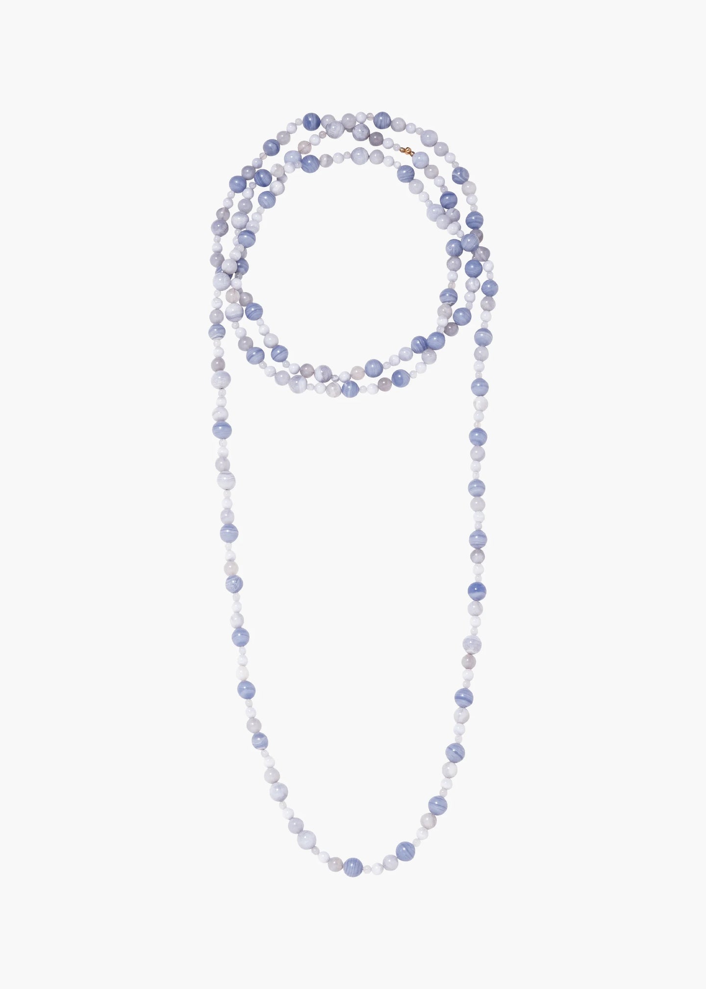 Conveying a classic elegance, the Veda Necklace is a uniquely versatile finishing touch from our Semi-Precious Collection. Measuring an impressive 74 inches, it can be styled a multitude of ways and wrapped numerous times, and is designed to be paired with other pieces in our Semi-Precious Collection. Dimensions: 74" length.