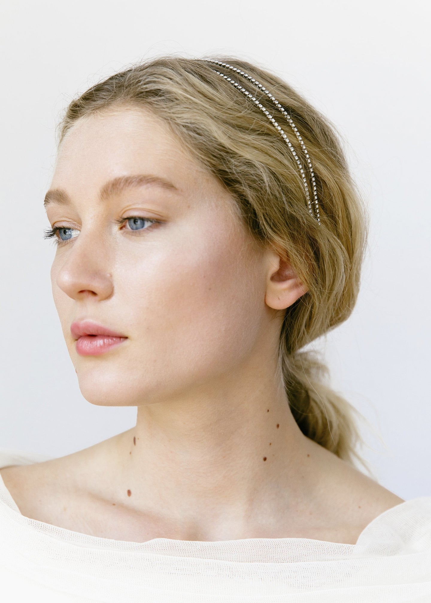 Minimalists, rejoice: the Evie Headband delivers high-shine in a fully modern headpiece. Featuring dual rows of Swarovski crystals, each stone is prong-set by hand for maximum sparkle. The Evie Headband's pared-down silhouette makes it easy to wear with our crystal earrings and other accessories.