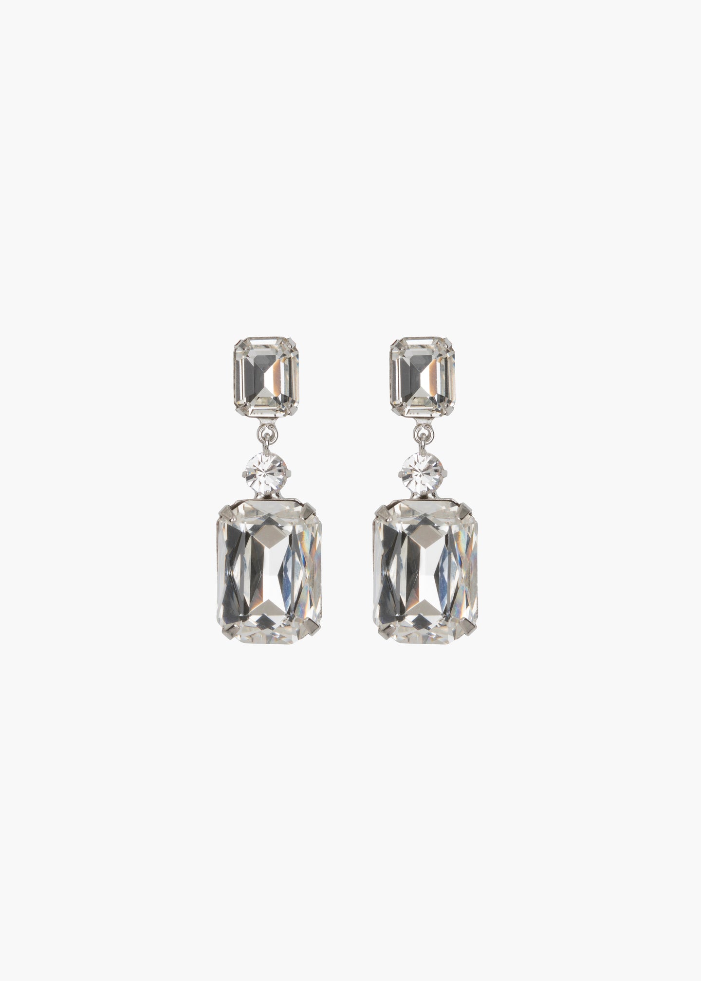 Your Bejeweled Era begins with the Justine Earrings. A pair of stately emerald-cut crystals in complementary hues are separated by a single delicate round stone. These superior drops will remain in constant rotation in your wardrobe for years to come. Dimensions: 1.5" length.