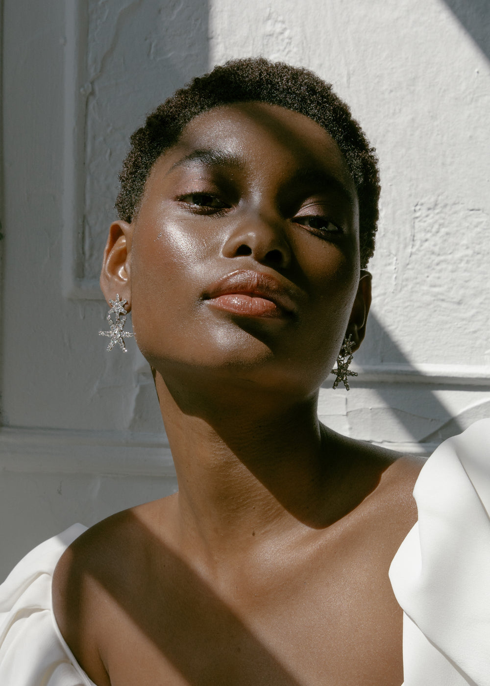 Inspired by the sky above, you will feel ethereal in these dreamy styles. The shimmering stars of our best selling Pluto Earrings catch the light and complete your look. Scatter striking crystals throughout your hair with the Supernova Bobby Pin Set for an otherworldly look. The collection is made in our New York City studio with carefully placed hand set crystals.