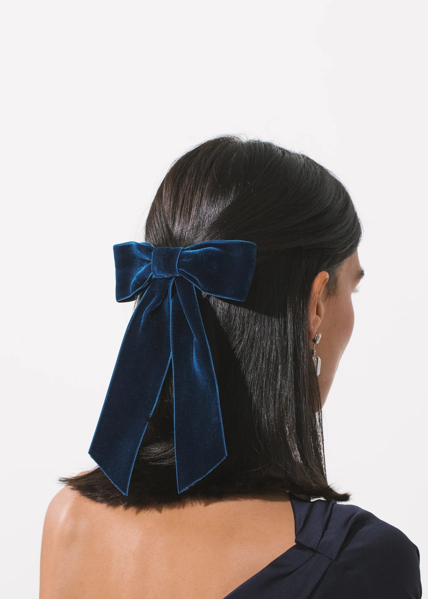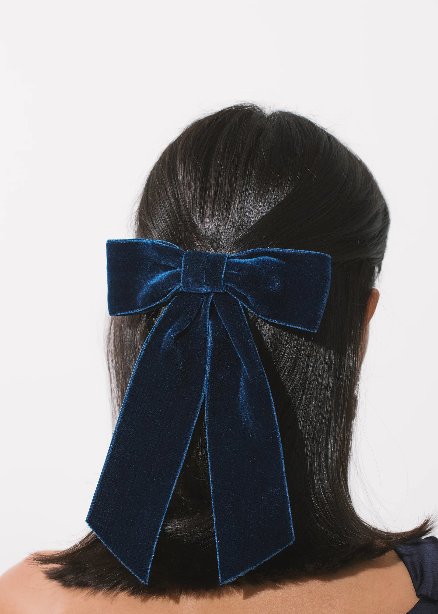 The Wide Velvet Bow Barrette is the larger sister of our classic Velvet Bow Barrette. Handmade in our Brooklyn studio, it features thick satin-edged silk velvet ribbon and a French barrette closure, making it easy to wear a multitude of ways, in any type of hair. This bow is a timeless addition to your hair collection. Dimensions: 6 x 9 inches Weight: 19g