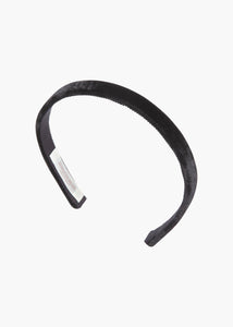 The Lacey Headband is made by hand in New York from silk velvet and lined in grosgrain to ensure ultimate comfort and promote hair health. We recommend storing headbands in their dust bag while not in use. Avoid contact with water, perfume, and other chemicals, including hairspray, which should be used only before placement in the hair.