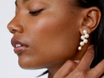 Pearls are a classic, and the Marcella is our twist: ladylike, but definitely not your mother's pearls. These feminine earrings are made by hand in our Brooklyn studio with luminous crystal pearls. The Marcella Earring coordinates perfectly with our other pearl hair accessories, like the Perla Bobby Pins. Dimensions: 1.75 x 0.5 inches; Weight: 16.5g each