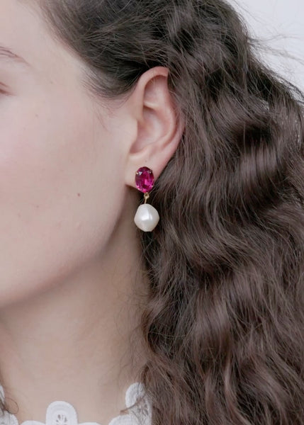 Playful, yet refined, the Tunis Earring offers punchy, saccharine hues, offset with a baroque-shaped glass pearl, which gives this piece incredible movement. Dimensions: 1 3/8 inch length